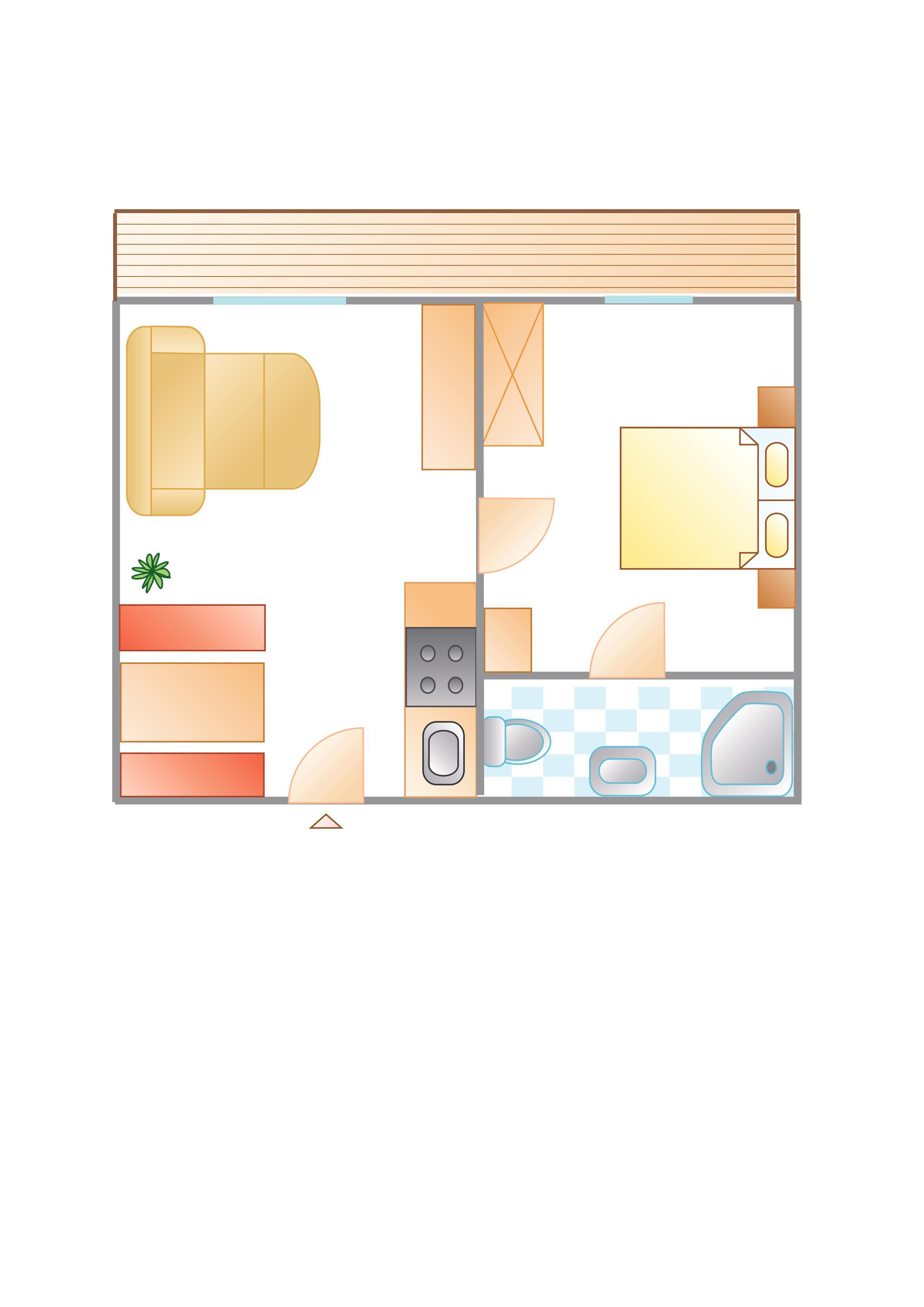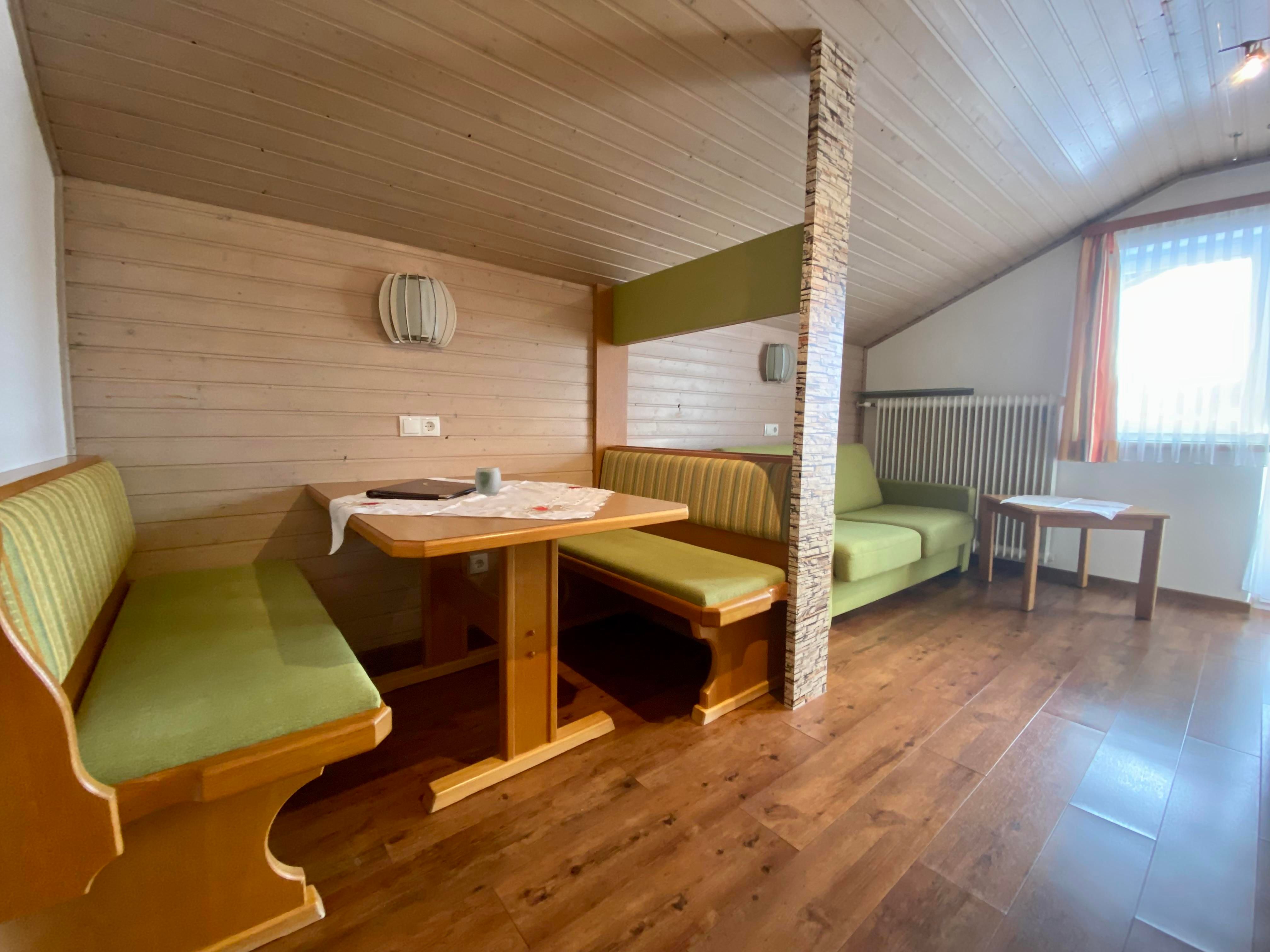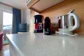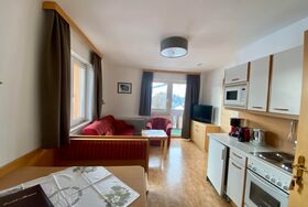 Die Wohnung (35m²) besteht aus einem Schlafzimmer mit Doppelbett, Wohnzimmer mit ausziehbarer Couch, Dusche/WC, komplett eingerichteter Küchenzeile, Kühlschrank mit Gefrierfach, Backofen, Mikrowelle, Geschirrspüler, Sat-TV, Telefon, südseitiger Balkon.