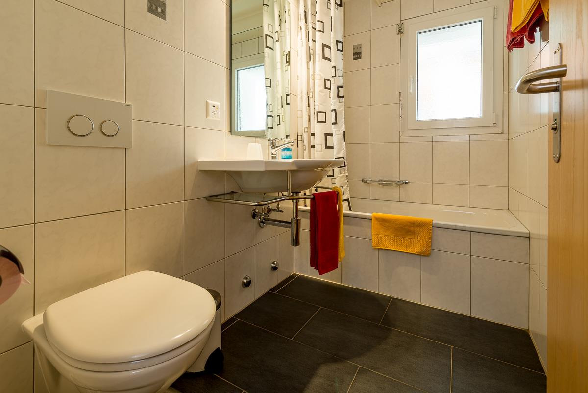 1 Dusche/WC ,Haarföhn und Südbalkon. Die Wohnung ist ausgestattet mit Kabel-TV, Radio mit CD Player und kostenlosem ADSL Wireless LAN Internetzugang. Die Wohnung ist gemütlich, modern und zweckmässig eingerichtet.