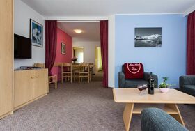 3 Zimmerwohnung (60m2) 2. OG / Nichtraucherwohnung, für Familien und ruhige Personen. Haustiere nicht erlaubt. 2 Schlafzimmer mit 2 Betten, geräumiges Wohnzimmer mit Polstergruppe und 1 Schrankbett, separater Küche mit 4 Kochplatten, Backofen, Geschirrspüler, Kühlschrank, Mikrowelle, Kapselkaffeemaschine und Wasserkocher. Bad/WC, Haarföhn und Südterrasse. Die Wohnung ist ausgestattet mit Kabel-TV, Radio mit CD Player und kostenlosem ADSL Wireless LAN Internetzugang. Die Wohnung ist gemütlich, modern und zweckmässig eingerichtet.