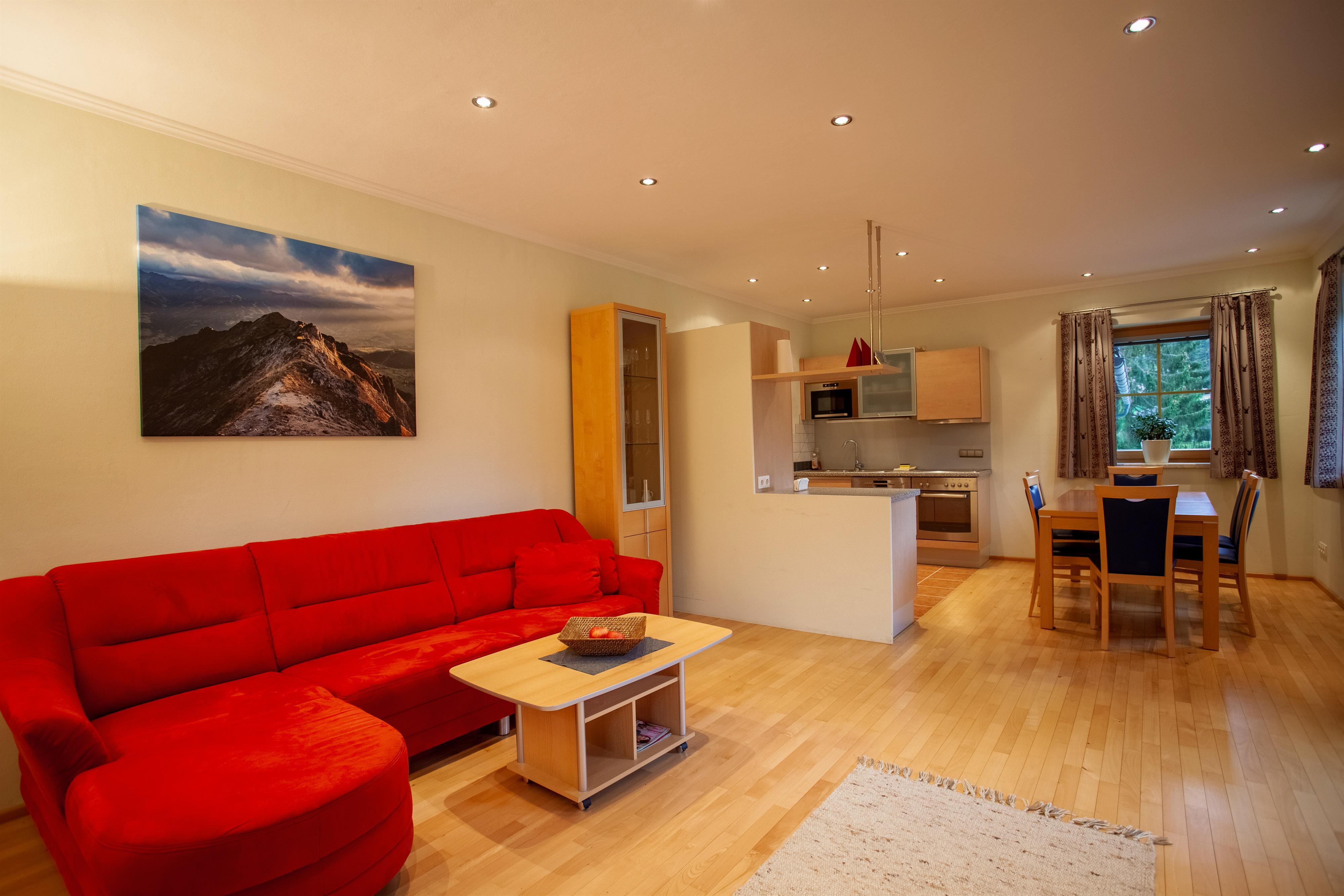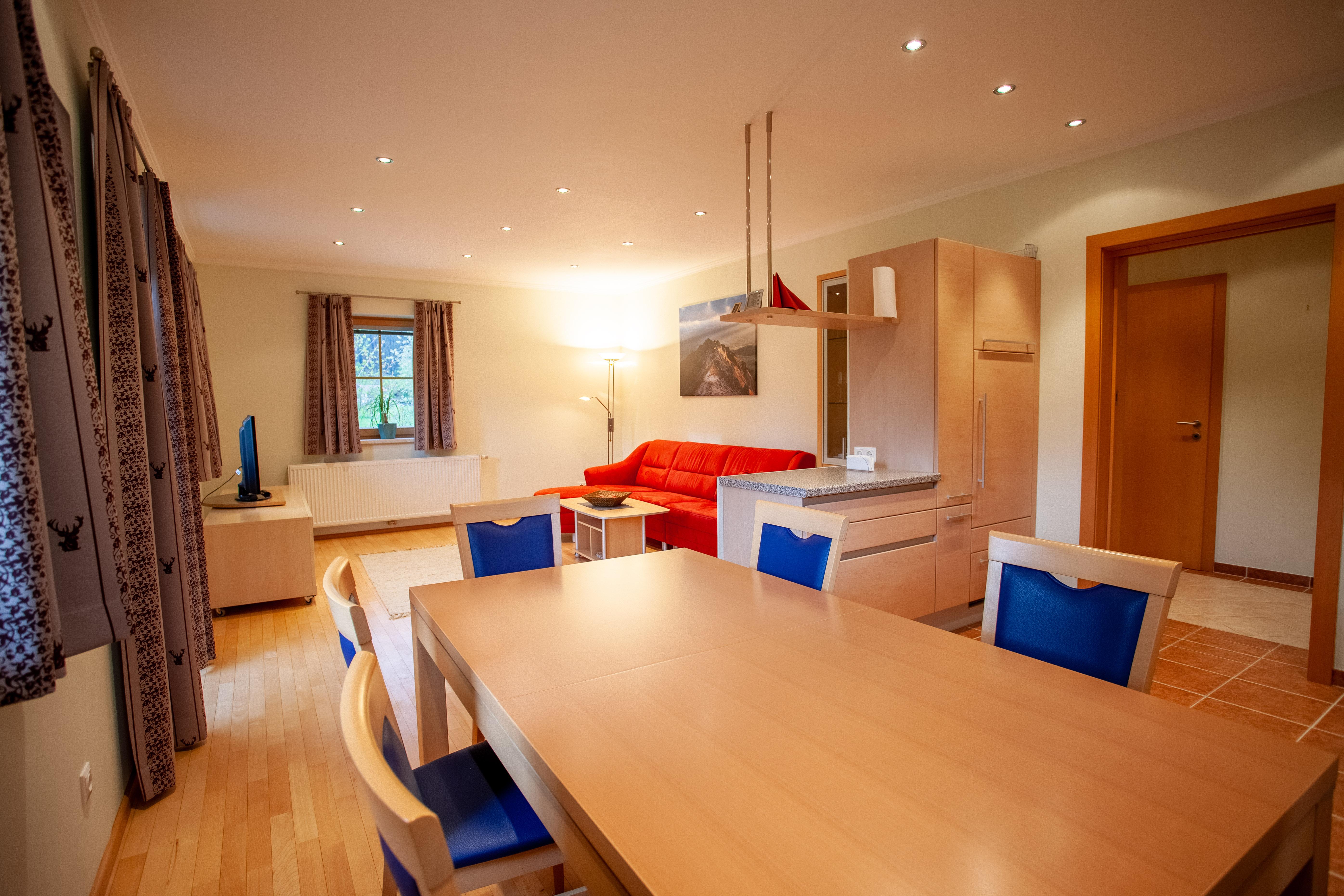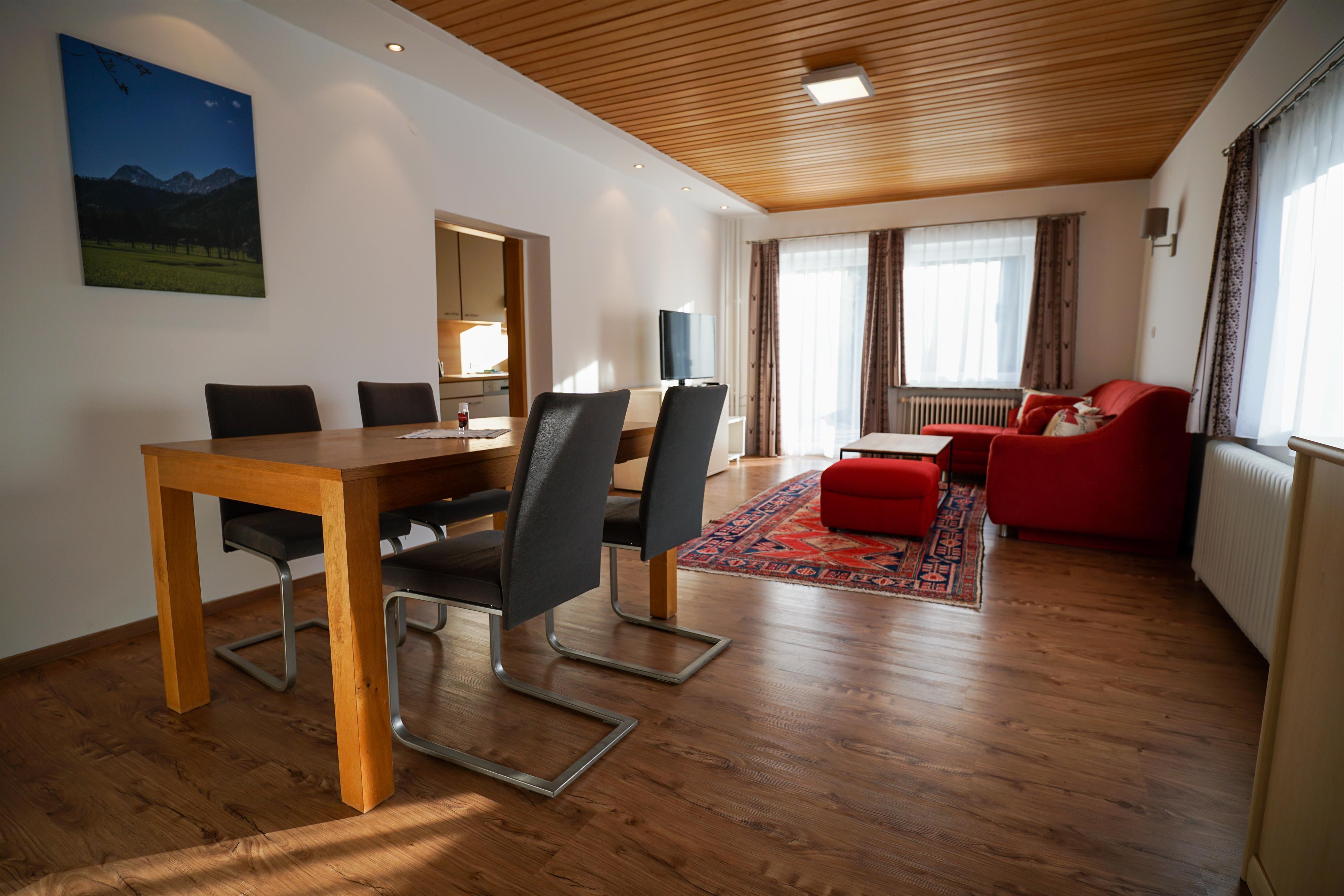 Nichtraucher Appartement mit Vorraum und Garderobe, komplett ausgestattete Küche mit Esstisch, helles Wohnzimmer mit komfortablen Schlafmöglichkeiten für 2 Personen und Flatscreen TV, 1 Doppelzimmer, 1 Badezimmer mit Dusche, ein getrenntes WC, Wireless Internet Zugang in allen Räumlichkeiten.