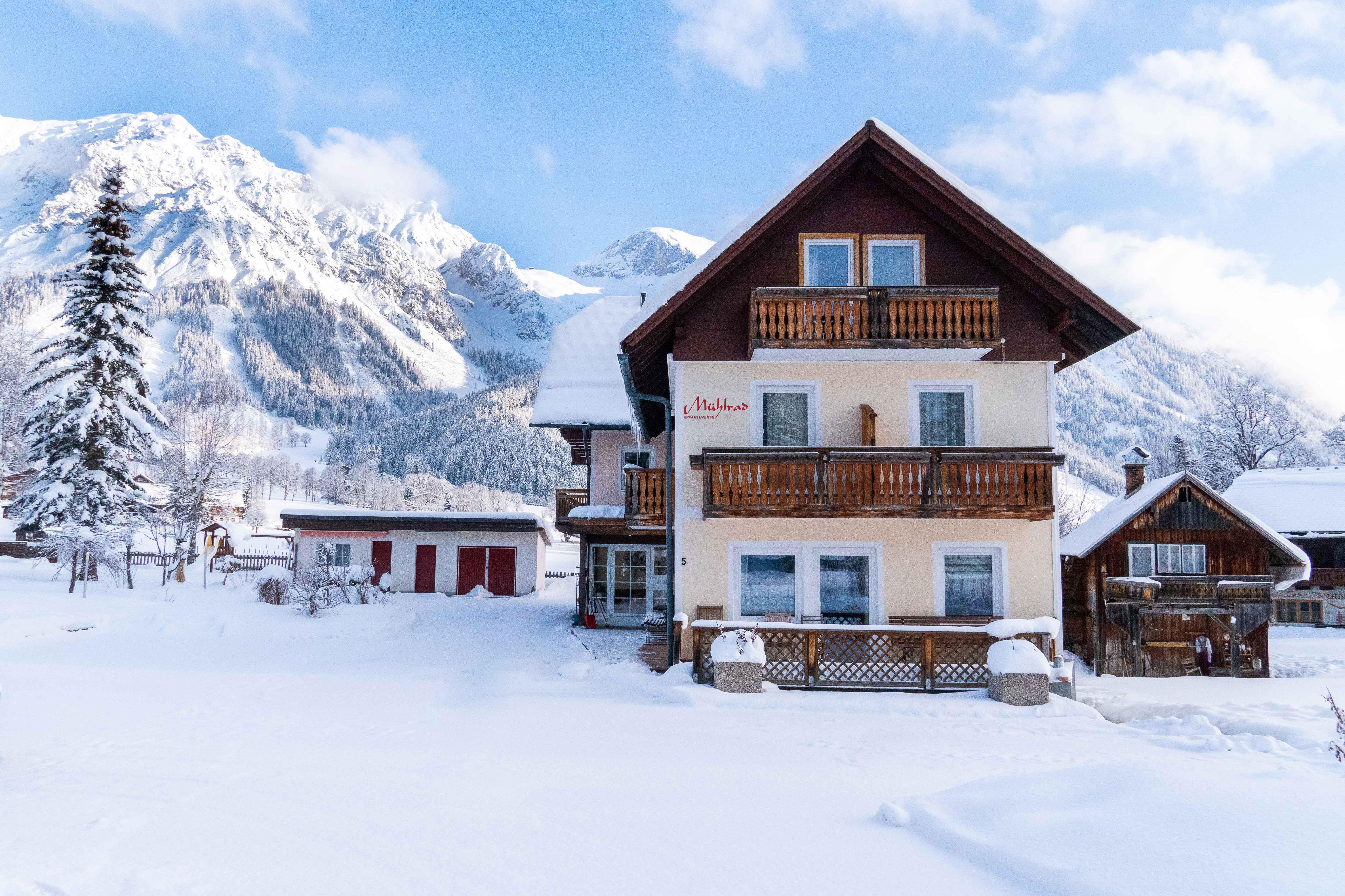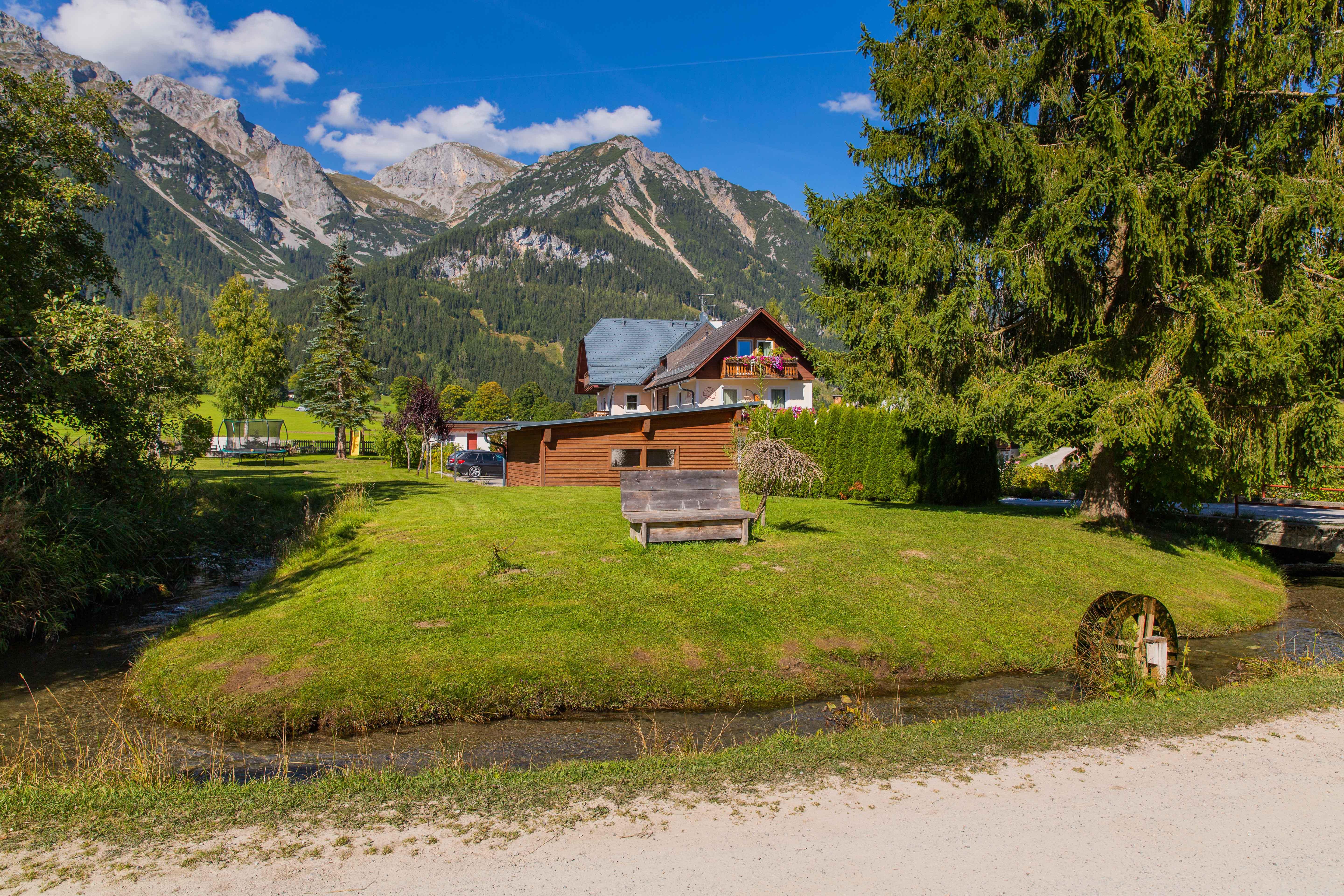 Im Sommer lädt der großzügige Garten am idyllischen Bach zum Entspannen ein, während zahlreiche Aktivitäten wie Wanderungen oder Spaziergänge direkt vom Haus aus beginnen können. Die ruhige und naturnahe Lage wird von einem atemberaubenden Panorama auf das Dachsteinmassiv gekrönt und macht das Mühlrad Appartements zu einem besonderen Rückzugsort für Ihren Urlaub – zu jeder Jahreszeit!