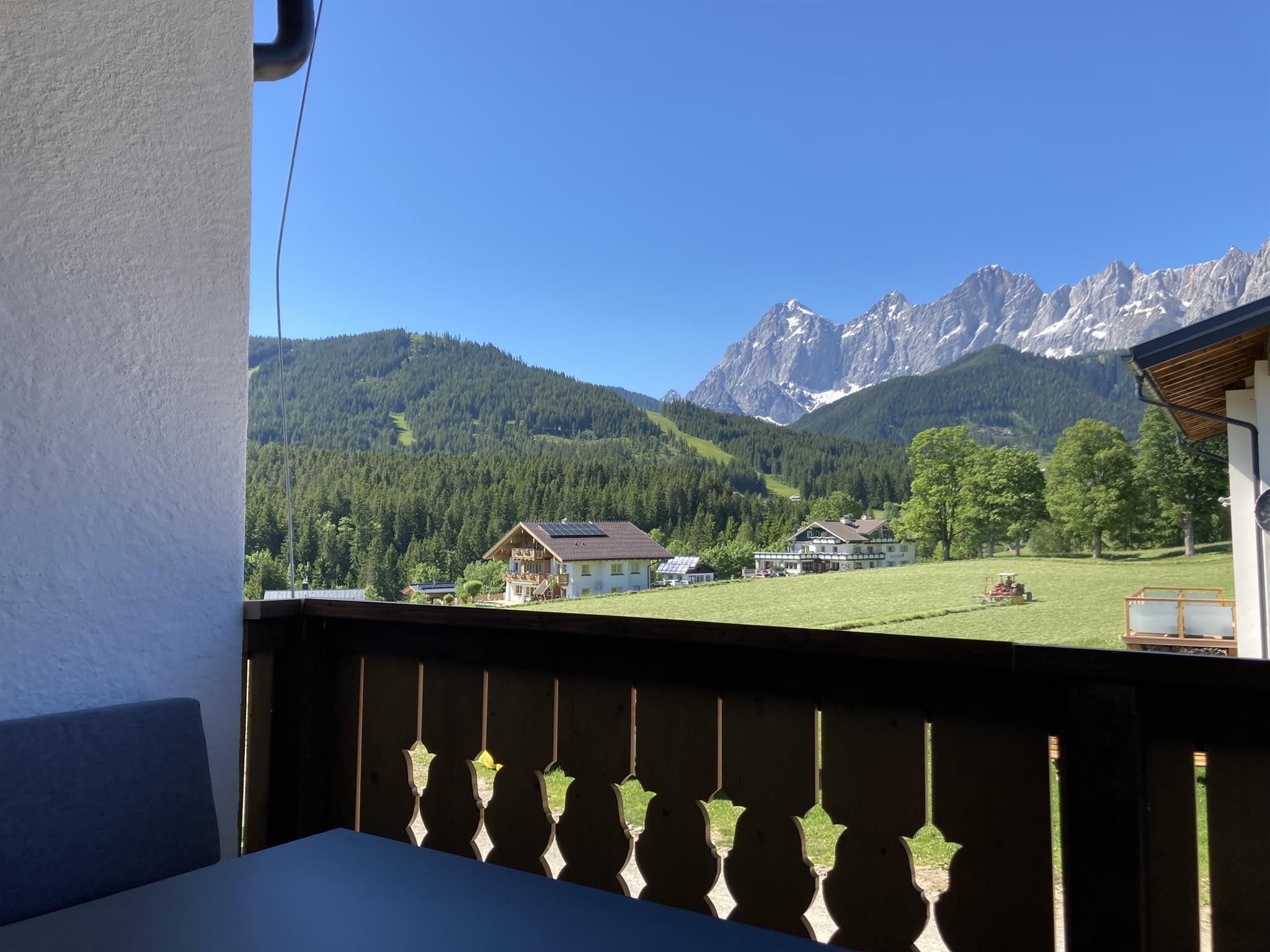 • Terrasse in Nord- und Ostausrichtung mit Blick auf das Dachsteinmassiv