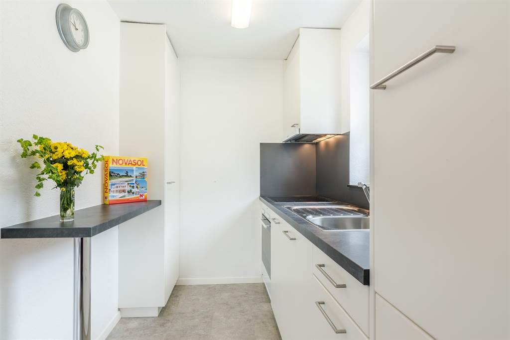 Die offene Küche ist komplett eingerichtet mit Glaskeramikherd, Backofen, Geschirrwaschmaschine, Kühlschrank, Filterkaffeemaschine. Die Küche ist vollständig und feriengerechte ausgestattet inkl. Küchenwäsche.