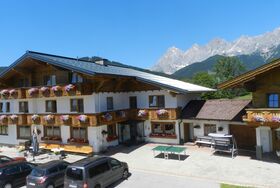 Wir begrüßen Sie herzlich in der Pension Blasbichlerhof mitten im Grünen in ruhiger Lage im malerischen Ortsteil Vorberg von Ramsau am Dachstein. In der Pension Blasbichlerhof können Sie Ihren Urlaub mit Familie und Freunden in vollen Zügen genießen, auch als Gruppe bis zu 30 Personen. Die Haltestelle des kostenlosen Ski- und Linienbusses, der Sie zum familienfreundlichen Skigebiet Rittisberg und zur 4-Berge-Skischaukel im Herzen des Skiverbunds ski amadé bringt, ist nur 3 Gehminuten von unserer Pension Blasbichlerhof entfernt. Die Seilbahn, die Ihnen die imposante Welt des Dachsteingletschers erschließt, ist in nur 15 Autominuten bequem zu erreichen. Hier wird das ganze Jahr Schneegarantie und Pistenspaß pur geboten. Für Wanderungen, Spaziergänge und Mountainbike Touren in der Region Schladming-Dachstein sind wir ebenso der perfekte Ausgangspunkt. Am Morgen werden Sie mit einem großzügigen Frühstücksbuffet begrüßt. Gut gestärkt steht einem ereignisreichen Urlaubstag nichts im Weg. Unsere 15 gemütlichen Zimmer sind alle sehr geräumig und komfortabel eingerichtet, sie verfügen über Dusche/WC, HD Sat-TV und einen großen Balkon mit einem beeindruckenden Blick auf das majestätische Dreigestirn des Hohen Dachsteins. Gerne können Sie bei uns auch mit Halbpension buchen, wo wir Sie am Abend mit einer warmen Buffetplatte direkt am Tisch überraschen. Selbstverständlich nutzen Sie im gesamten Haus Blasbichlerhof das W-Lan kostenfrei. Parken Sie Ihr Auto direkt und sicher vor unserer Pension Blasbichlerhof und stellen Sie Ihre Sport- und Skiausrüstung im Skiraum mit Schuhtrockner ab. In unserem großen Garten mit Liegewiese entspannen Sie in der Sonne, während sich Ihre Kinder auf dem Spielplatz mit Schaukel, Rutsche, Trampolin und im Spielhaus austoben. Auf unserem Bauernhof Blasbichlerhof ist immer etwas los – kein Wunder bei so vielen Tieren, die schon auf die täglichen Streicheleinheiten warten. Weiters gibt es zwei Aufenthaltsräume mit TV, DVD und Playstation 4 - Konsole. Zusätzlich können Sie sich nach einer anstrengenden Wanderung in den Ramsauer Bergen oder nach einem aufregenden Skitag in der Region ski amadé in unserem neu errichteten Saunabereich mit Sauna, Dampfbad und Infrarotkabine erholen. Im Winter kehren Ramsauer Gäste gerne in der von unserer Familie geführten 400 Jahre alten Halseralm ein. Die Halseralm erreichen Sie zu Fuß über idyllische Winterwanderwege oder mit den Langlaufskiern über gut präparierte Loipen, die direkt zur Hütte und noch weiter rund um den Rittisberg führen. Eine romantische Pferdeschlittenfahrt zur Halseralm kann bei den Ramsauer Bauern gebucht werden. In der warmen Stube verwöhnt Sie unsere Familie bei heißem Glühwein oder Jagertee mit Spezialitäten aus der Region. Was bei einem Besuch auf der urigen Halseralm auf keinen Fall fehlen darf, ist der flambierte Kaiserschmarrn! Nützen Sie über 100 Urlaubsleistungen ohne einen Cent extra zu bezahlen mit der Schladming-Dachstein Sommercard. Ob Wintersport begeistert, aktiv im Sommer oder erholungssuchend - in Ramsau am Dachstein vergessen Sie Ihren Alltag und tauchen ein in die faszinierende Berg- und Erlebniswelt der Alpen. Eine stets bestens präparierte Langlaufloipe des WM-erprobten Langlaufnetzes führt direkt an unserem Haus vorbei. Rund 70 km Winterwanderwege stehen unseren Spaziergängern und Wanderern, die die verschneite Ramsauer Winterlandschaft genießen wollen, zur Verfügung. Zu unseren Gästen zählen auch Olympiasieger und Weltmeister, die sich jedes Jahr im Herbst auf die bevorstehende Wintersaison vorbereiten. Wir würden uns freuen, auch Sie bei uns am Blasbichlerhof in Ramsau am Dachstein willkommen heißen zu dürfen, Ihre Familie Knaus