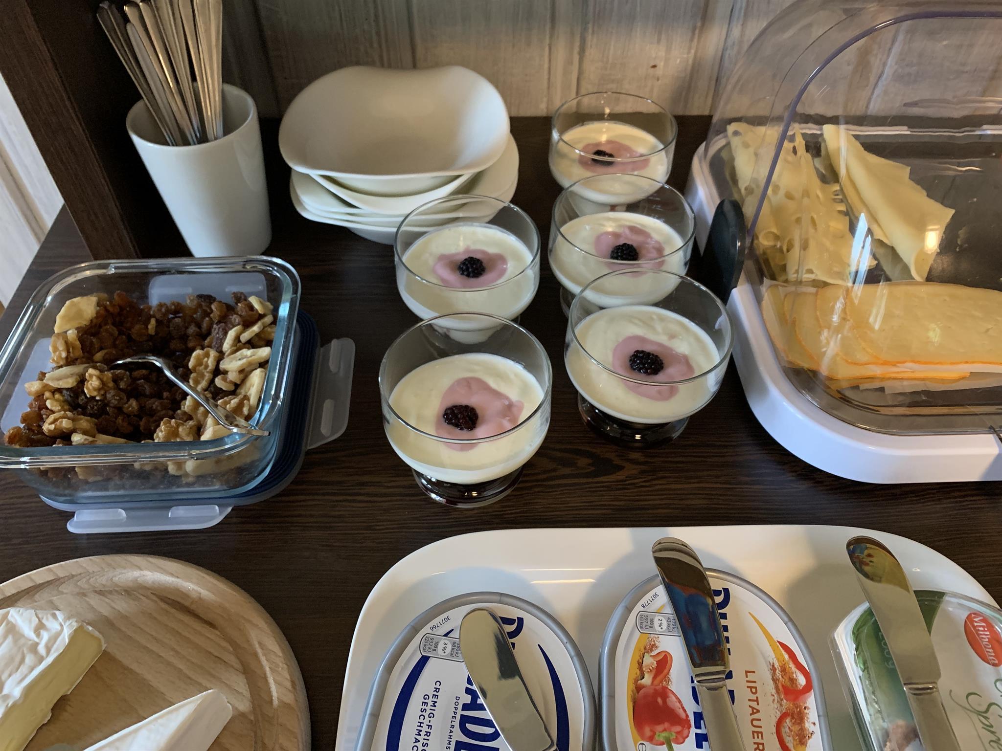 Starten Sie ihren Tag am vielfältigen Frühstücksbuffet mit vielen frischen Produkten im kleinen und gemütlichen Frühstücksraum.