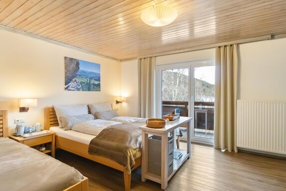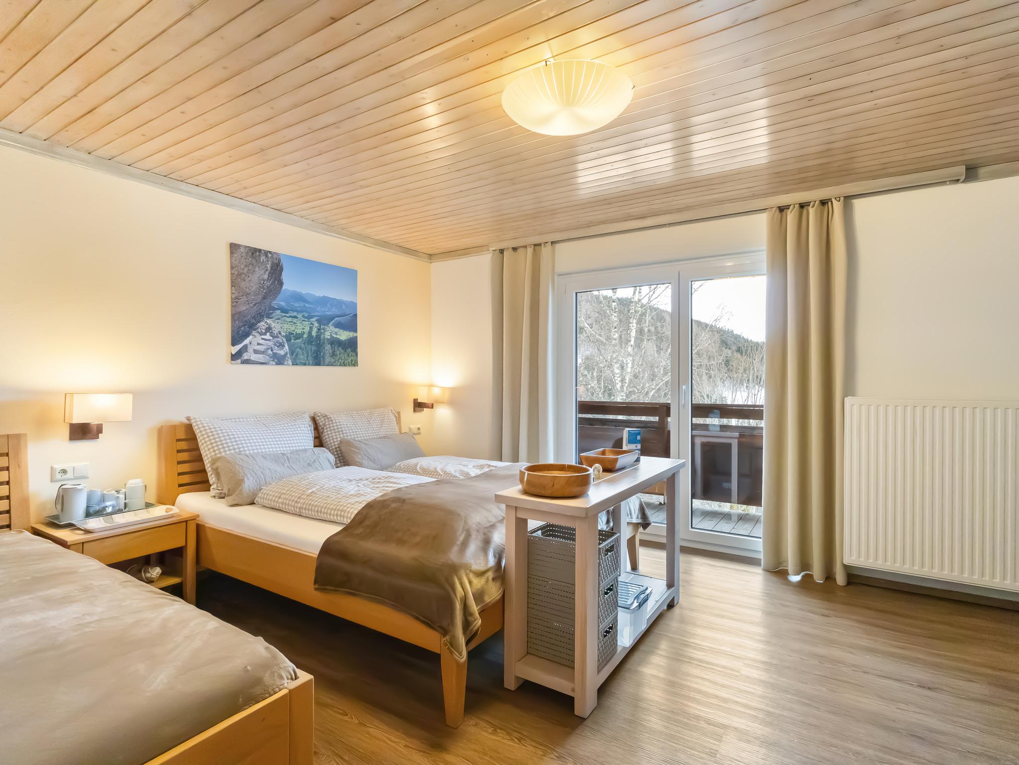 In unserer Pension Gsenger wohnen Sie in behaglichen Zweibett-, Doppel- oder einem Familienzimmer mit Dusche, WC und kostenlosen W-Lan. Weiters vermieten wir noch eine Ferienwohnung für 2 Personen mit einem 15m² großen Wohnzimmer, Küche und separatem Schlafraum. Bereits am Morgen genießen Sie von Ihrem Balkon aus, den herrlichen Ausblick auf die malerische Bergwelt und die umliegenden blühenden Wiesen.