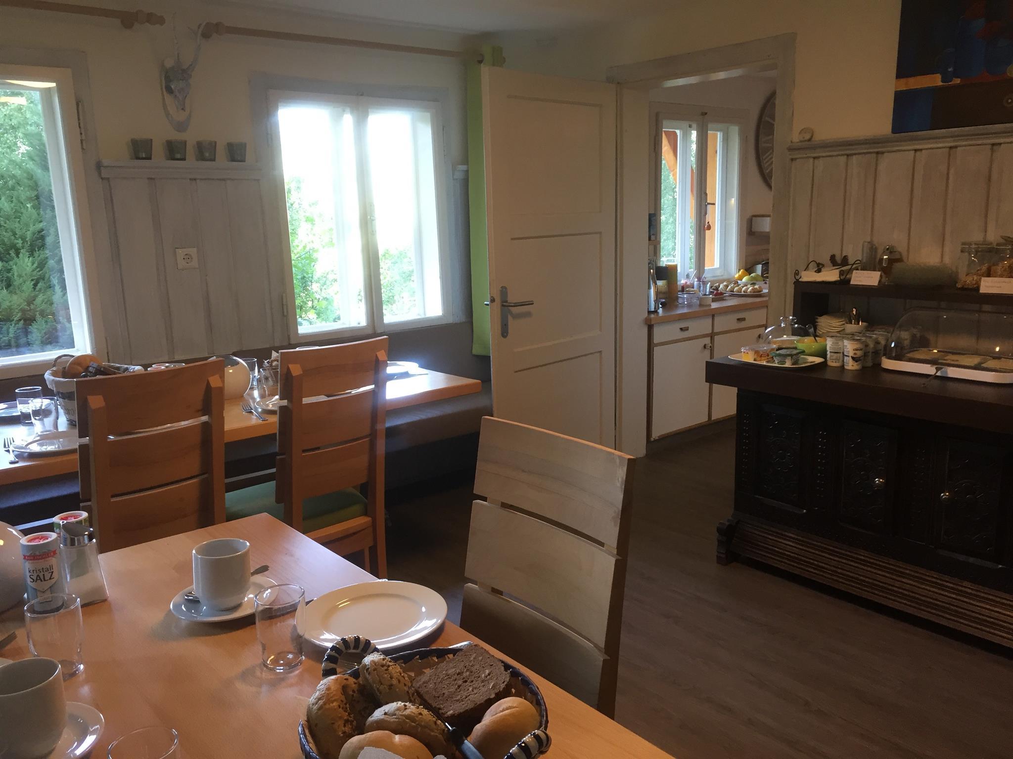 Starten Sie ihren Tag am vielfältigen Frühstücksbuffet mit vielen frischen Produkten im kleinen und gemütlichen Frühstücksraum.