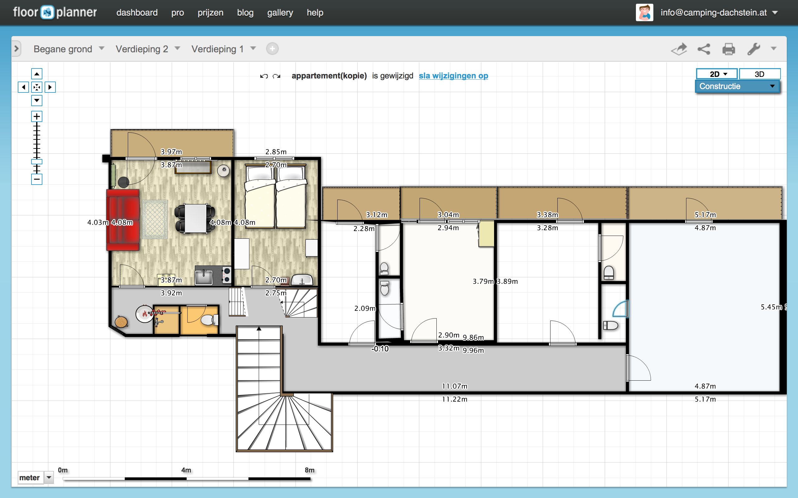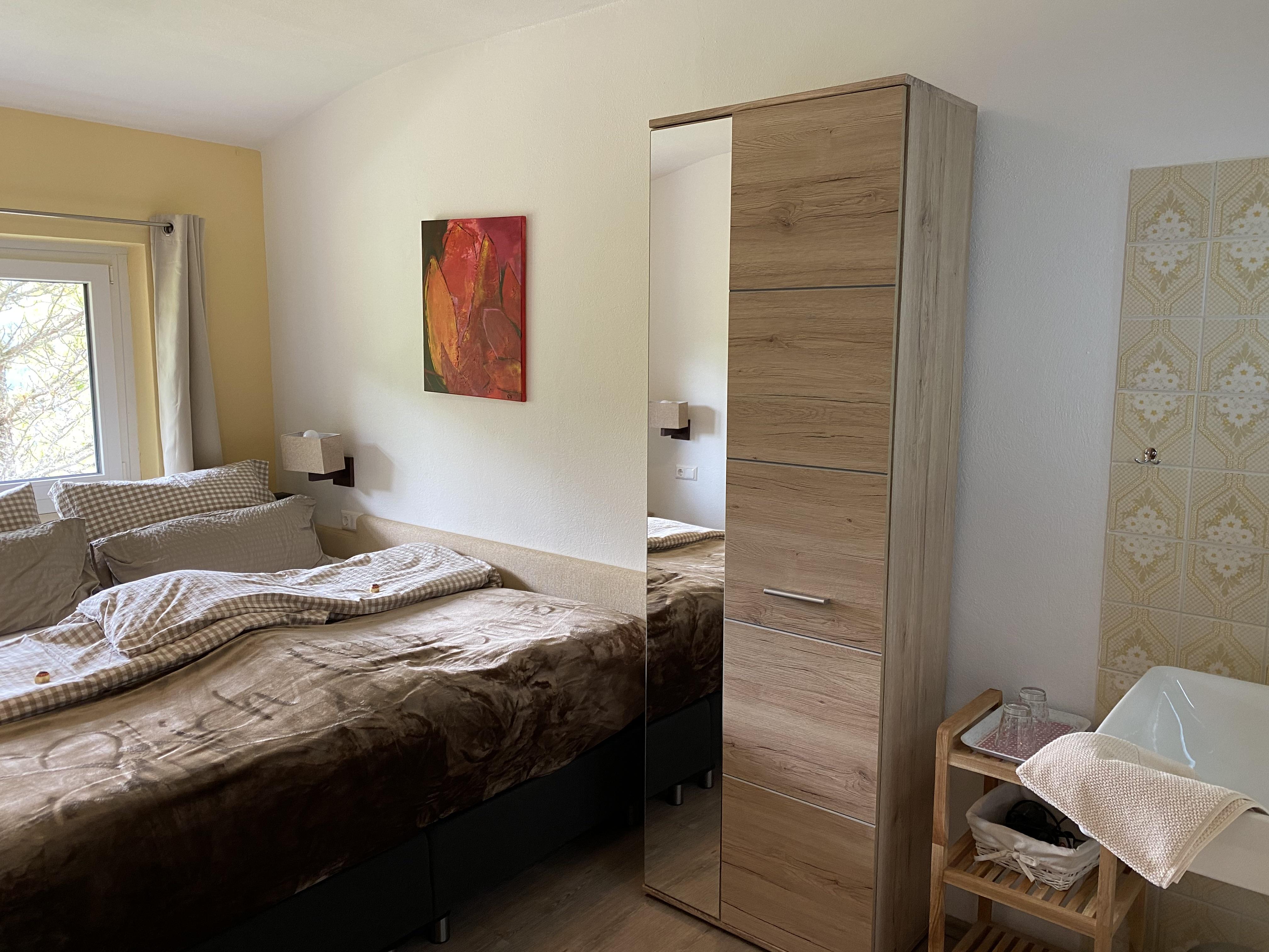 21 Quadratmeter mit Doppelbett 2 Meter x 1,80 Meter und Einzelbett 2 Meter x 1 Meter
