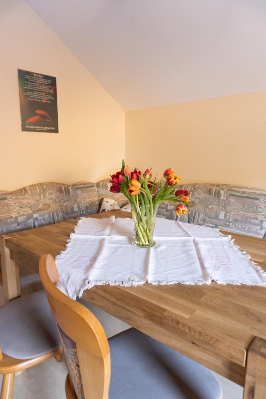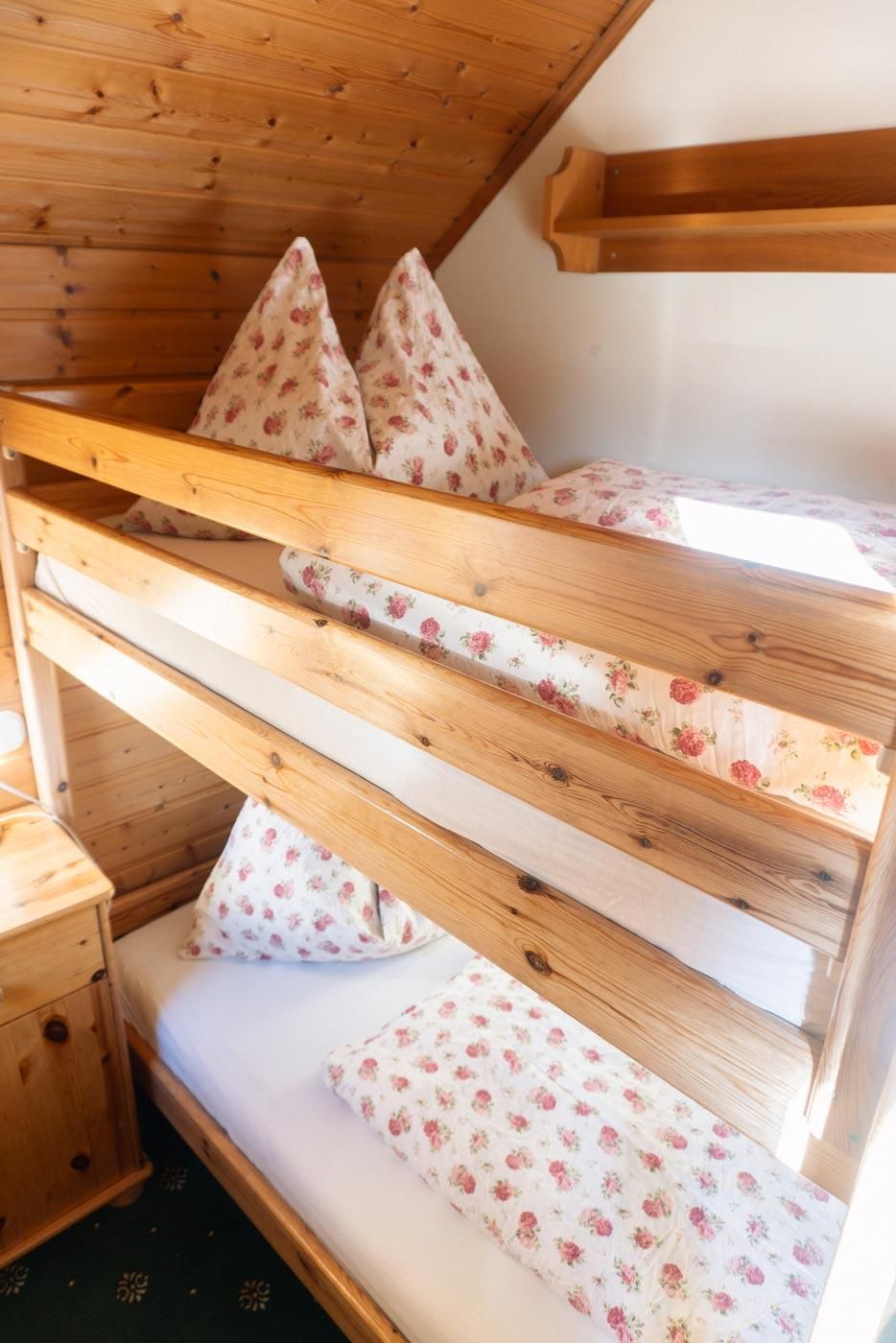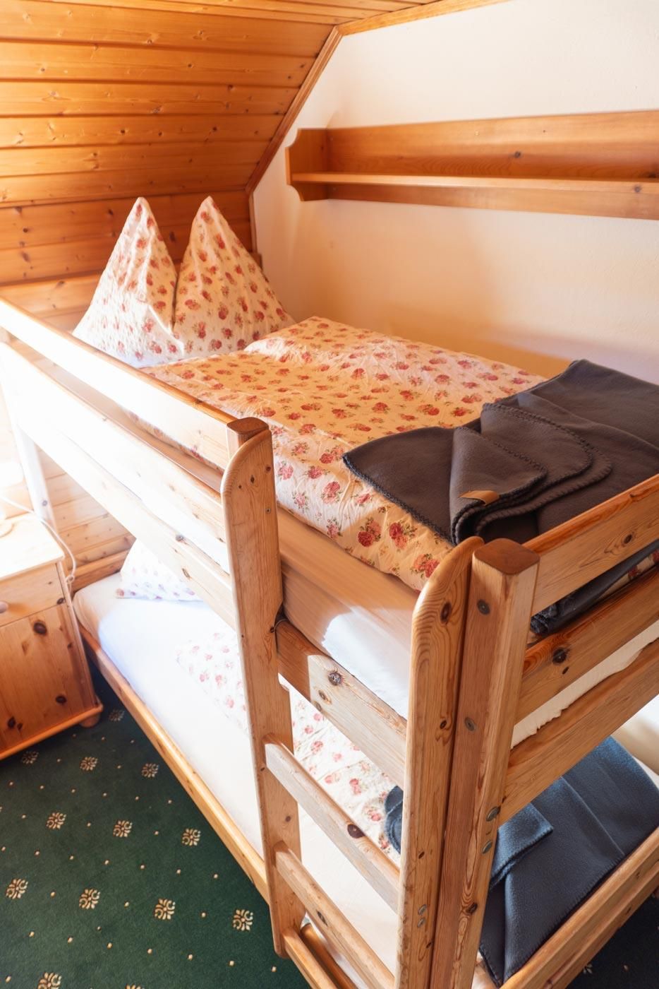 Unsere Ferienwohnung bietet zwei gemütliche Schlafzimmer (eins mit Doppelbett, eins mit Etagenbett), eine moderne Dusche, WC und einen Sat-TV für entspannte Abende. Der Balkon lädt dazu ein, die frische Luft zu genießen und die Umgebung in Ruhe zu betrachten. In der vollständig eingerichteten Wohnküche findest du einen E-Herd, Minibackofen, Mikrowelle, Kaffeemaschine und Wasserkocher – alles, was du für deinen Aufenthalt brauchst. Bettwäsche, Hand- und Badetücher sowie Geschirrtücher sind selbstverständlich vorhanden, um deinen Aufenthalt so angenehm wie möglich zu gestalten.
