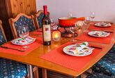 ruhige Lage, malerische Aussicht, Haus mit Tradition Schlafzimmer Zwei Schlafzimmer mit Doppelbetten und einem Ausziehsofa im Wohnzimmer für 1 Personen. Jedes Schlafzimmer ist mit einem Flachbildschirm (Satelliten TV) ausgestattet. Sanitäre Einrichtungen Jedes Zimmer ist mit Dusche/WC ausgestattet. Gegen einen Aufpreis von CHF 50.00 / Woche kann ein weiterer WC/Duschraum gemietet werden. Küche / Wohnzimmer Neue, moderne, gut ausgestattete Küche in Marmor: Spülbecken, Kühlschrank, Induktionsherd, Backofen mit integrierter Mikrowelle und einer Geschirrspülmaschine. Das Wohnzimmer ist mit einem Sofa, Flachbildschirm (Satelliten TV), Radio (DAB+, CD, Bluetooth, NFC), Telefon und einem Esstisch ausgestattet.