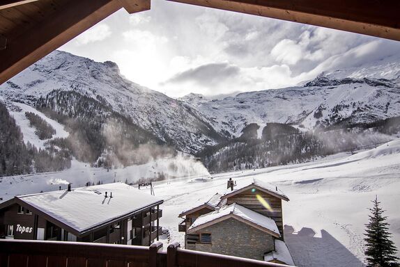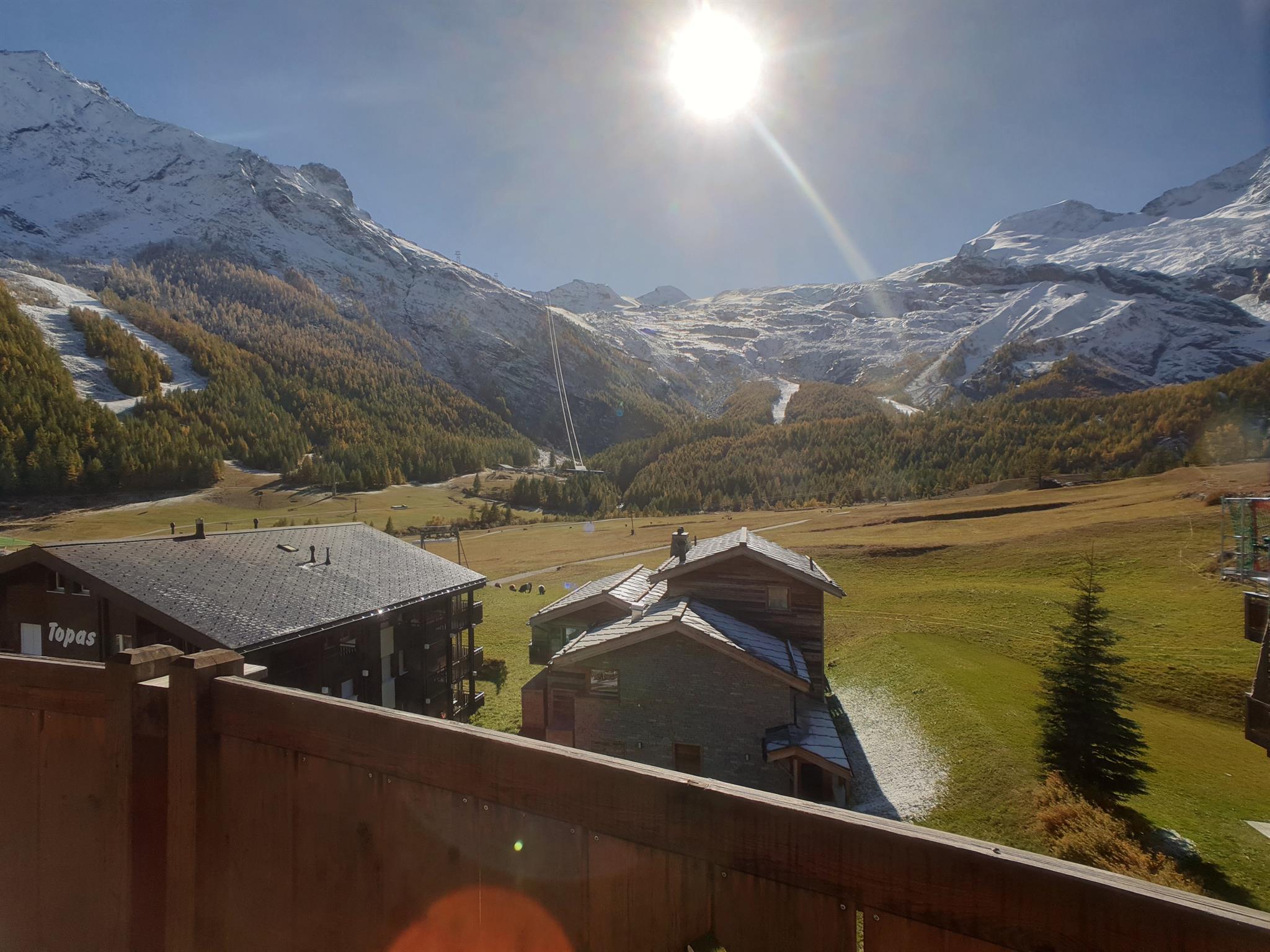 Schöne Penthouse Wohnung mit 3 Schlafzimmer, 2 Badezimmer und Kamin im Haus Aramis. Das Haus Aramis befindet sich direkt an der Piste zu den Skiliften Stafelwald. Ski in, Ski out mit fantastischer Aussicht.