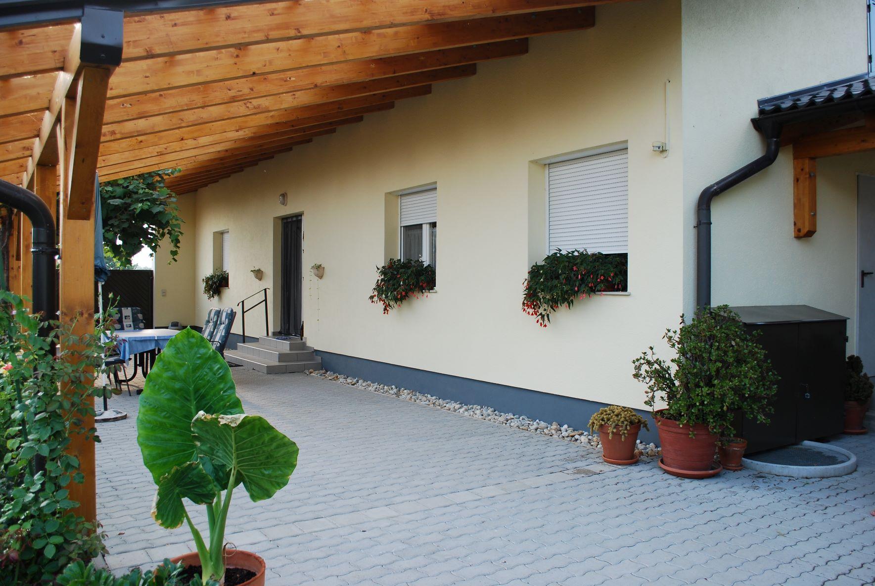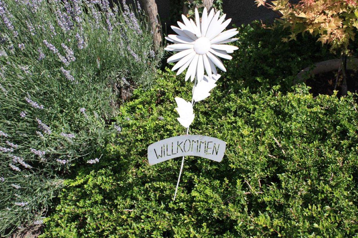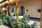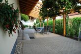Blumenreicher Hof, Liegewiese und großzügiger Gartenbereich, Weinlaube, Radeinstellplatz, Grillmöglichkeit, Parkplatz, Haustiere nach Absprache - großzügige eingezäunte Auslauffläche am Grundstück nebenan.