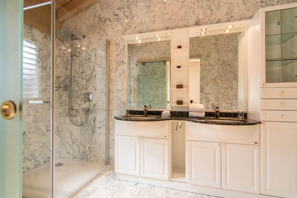 Das Hauptschlafzimmer verfügt über ein Doppelbett mit eigenem Badezimmer mit Erlebnisdusche und Haartrockner. Für die beiden weiteren Schlafzimmer steht ein gemeinsames Badezimmer mit Dusche und Haartrockner zur Verfügung.