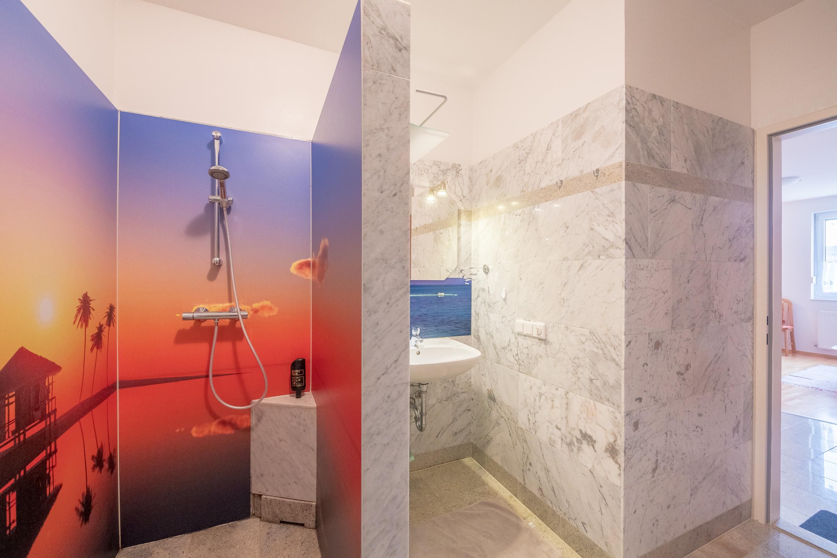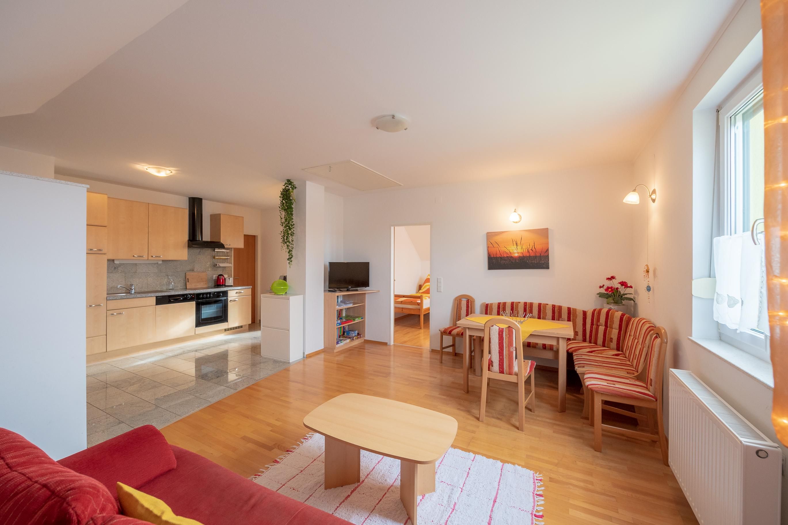 Die Wohnung ist 72 m² groß, hat 1 Schlafzimmer. Das Appartement ist voll ausgestattet: Föhn, Hand- u. Badetücher, Bettwäsche sowie Geschirr, 4-Plattenherd, Geschirrspühler, Gefrierschrank, Kaffeemaschine, sowie eine Kaffeepadmaschine, Toaster, Wasserkocher, Mikrowelle, Kabel-TV und Internetanschluß in der Wohnung, WLAN im ganzen Haus und Garten gratis. Auch Parkplätze stehen gratis zur verfügung