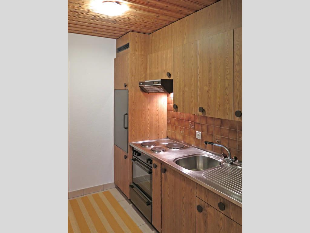 2-Zimmer-Wohnung, Hochparterre, ca. 32 m2. Wohn-/Schlafraum mit Doppelbettcouch, Essplatz, Küchenzeile. Doppelzimmer. Dusche/WC.