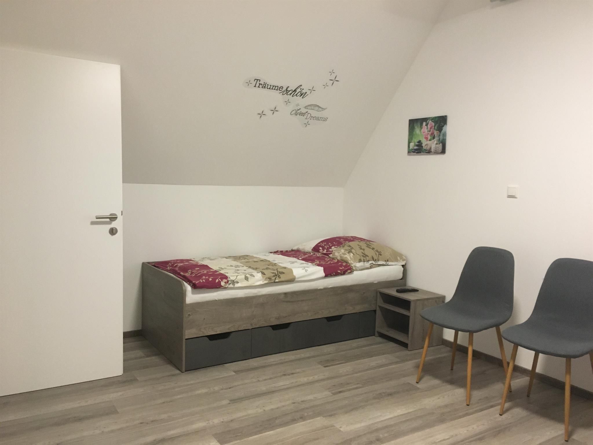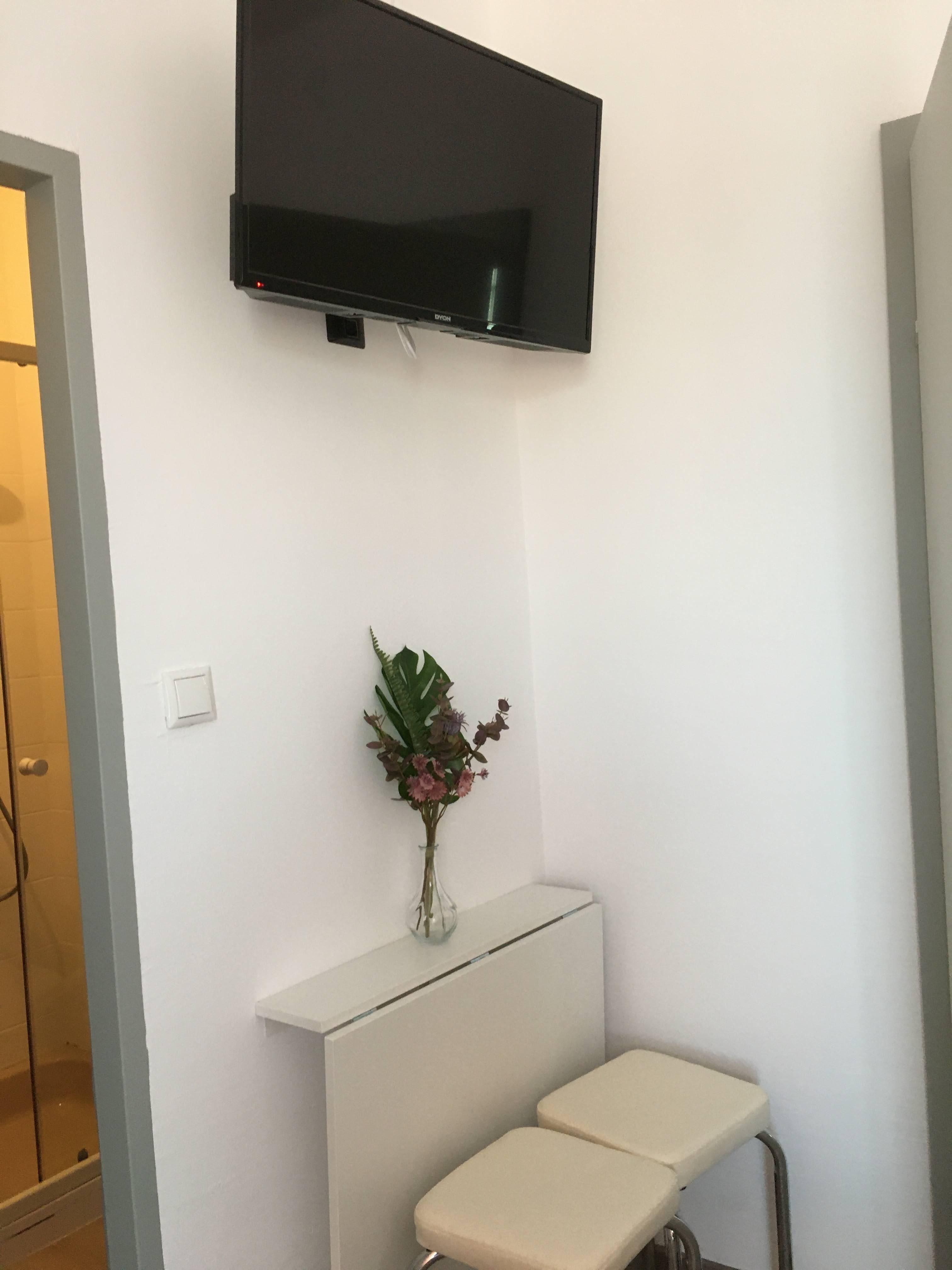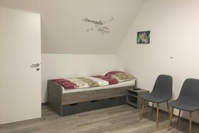 Unser Familienzimmer ist mit einem Doppelbett, einem Einzelbett, Bad mit Dusche und WC, gratis Wlan und einem TV ausgestattet.