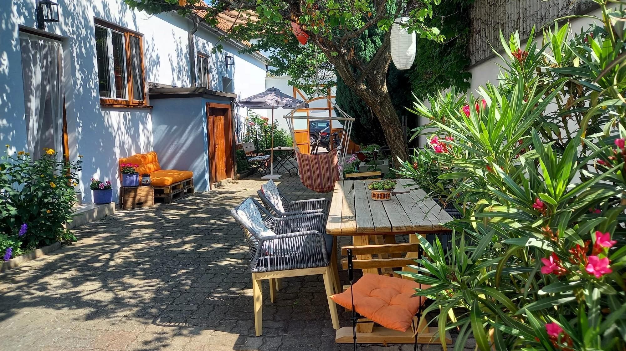 Wohlfühlen bei pannonischer Gastfreundschaft in einem typisch burgenländischen Innenhof geschmückt mit blühenden Oleandern. Dort haben Sie die Möglichkeit das Frühstück vom Buffet mit hausgemachten Marmeladen, sowie Produkten vom hauseigenen Garten bzw. der Region zu genießen. Den Abend können Sie entspannt bei einem Gals Bio-Wein oder Bio-Traubensaft ausklingen lassen. Sie können wählen zwischen Doppelzimmer, Familienzimmer oder unserer neu renovierten Ferienwohnung.