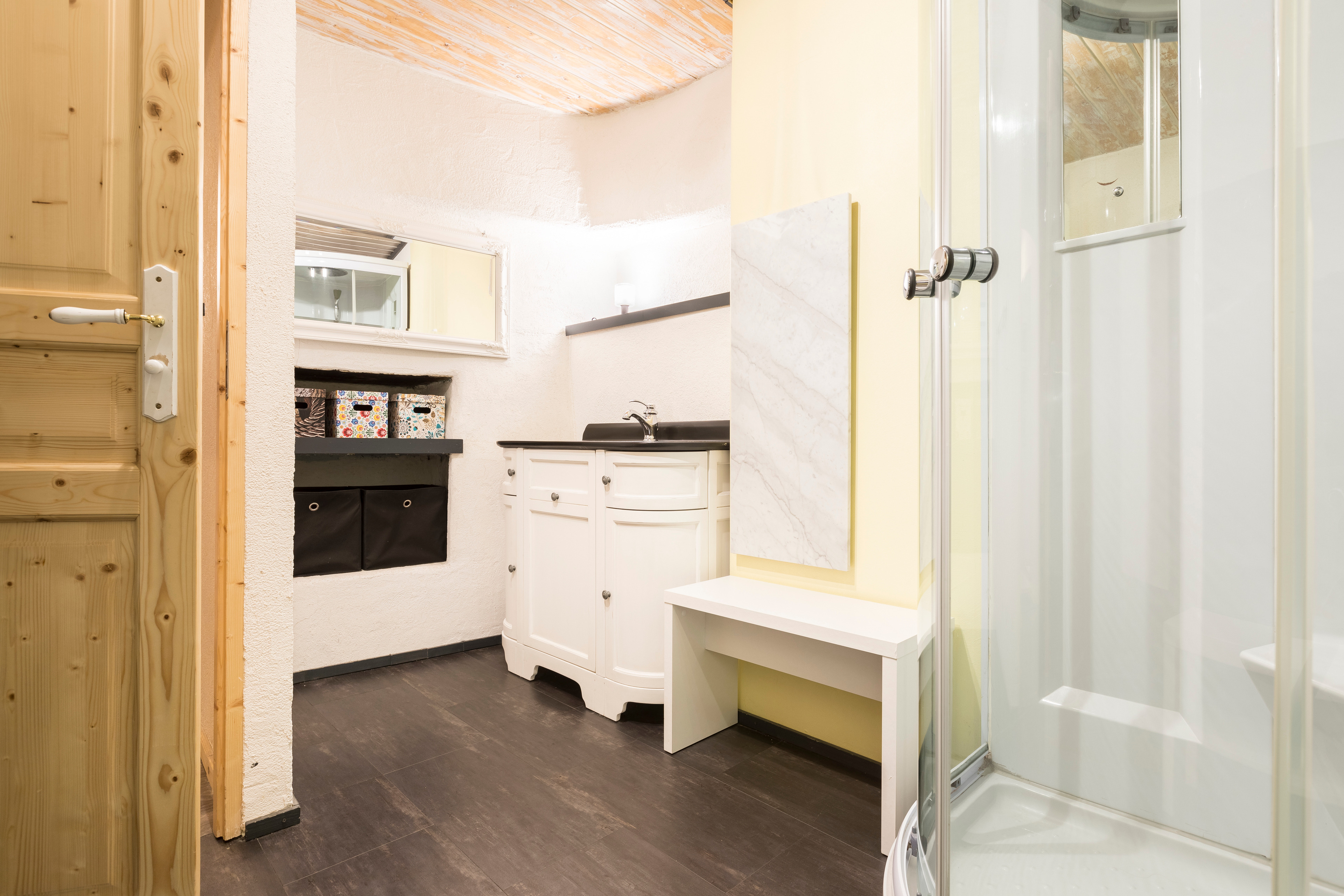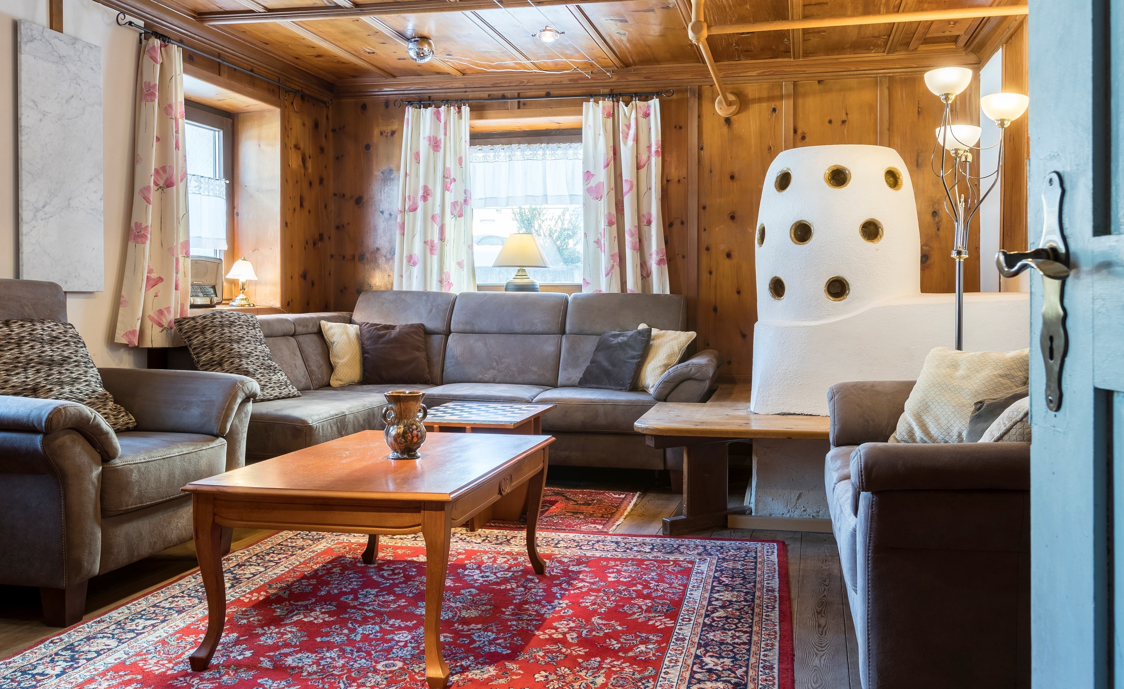 Eine alte Wohnstub z.B. blieb, moderne Elemente wurden hinzugefügt, wie zeitgemäße Bäder und eine moderne Haustechnik – z.B. Infrarotheizung, betrieben mit Strom aus Wasserkraft.