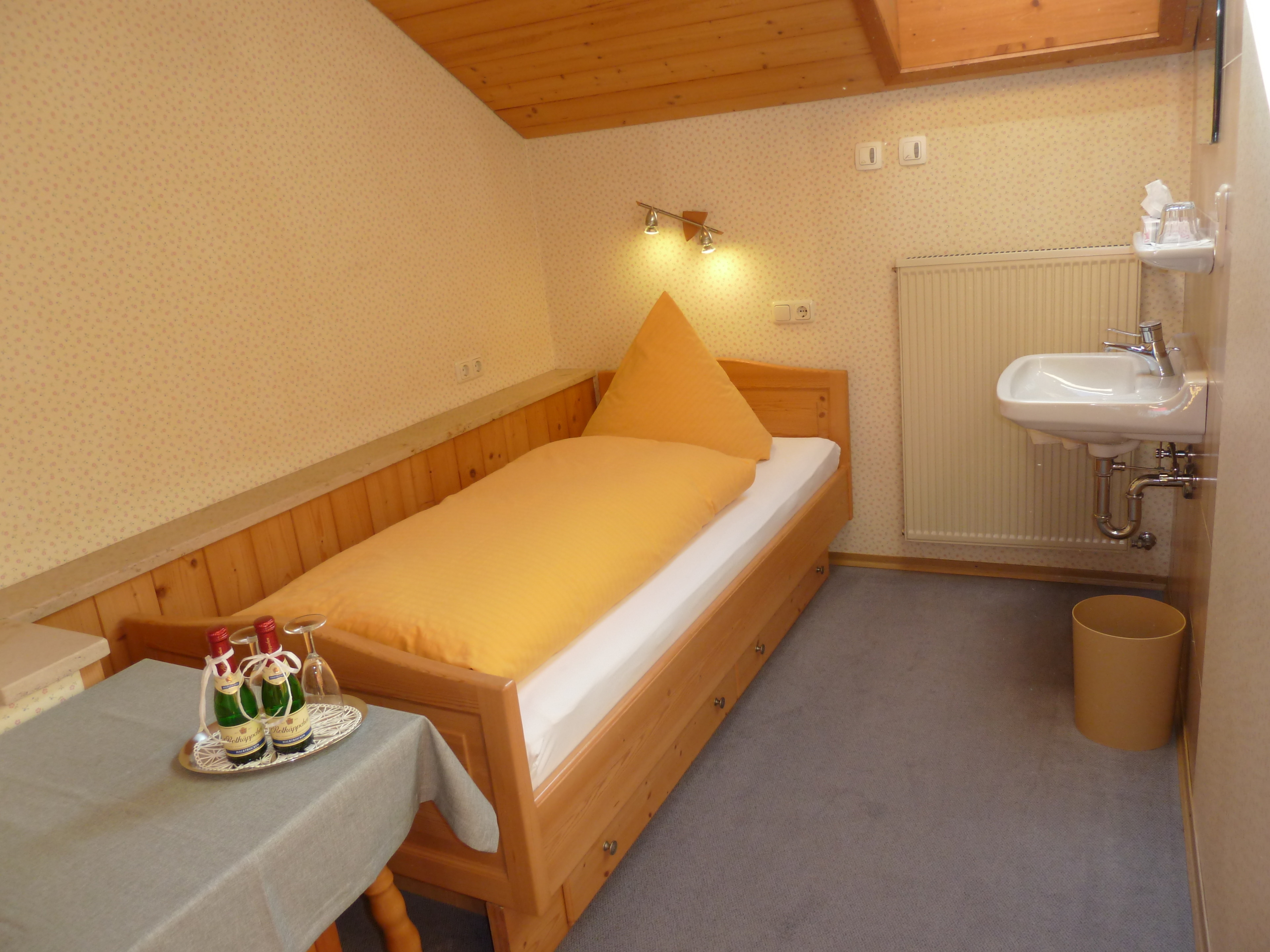 Ein separates Einzelschlafzimmer mit Waschgelegenheit.