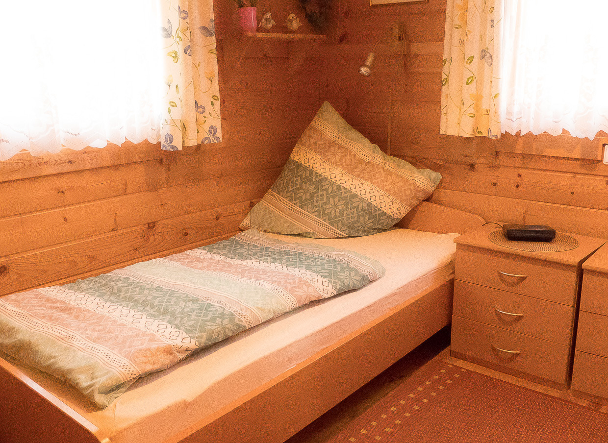 2 Schlafräume, einer mit 1 Doppelbett, einer mit 2 Einzelbetten (zusätzlich gibt es ein Kleinkinderbett für Kinder bis 3 Jahre).