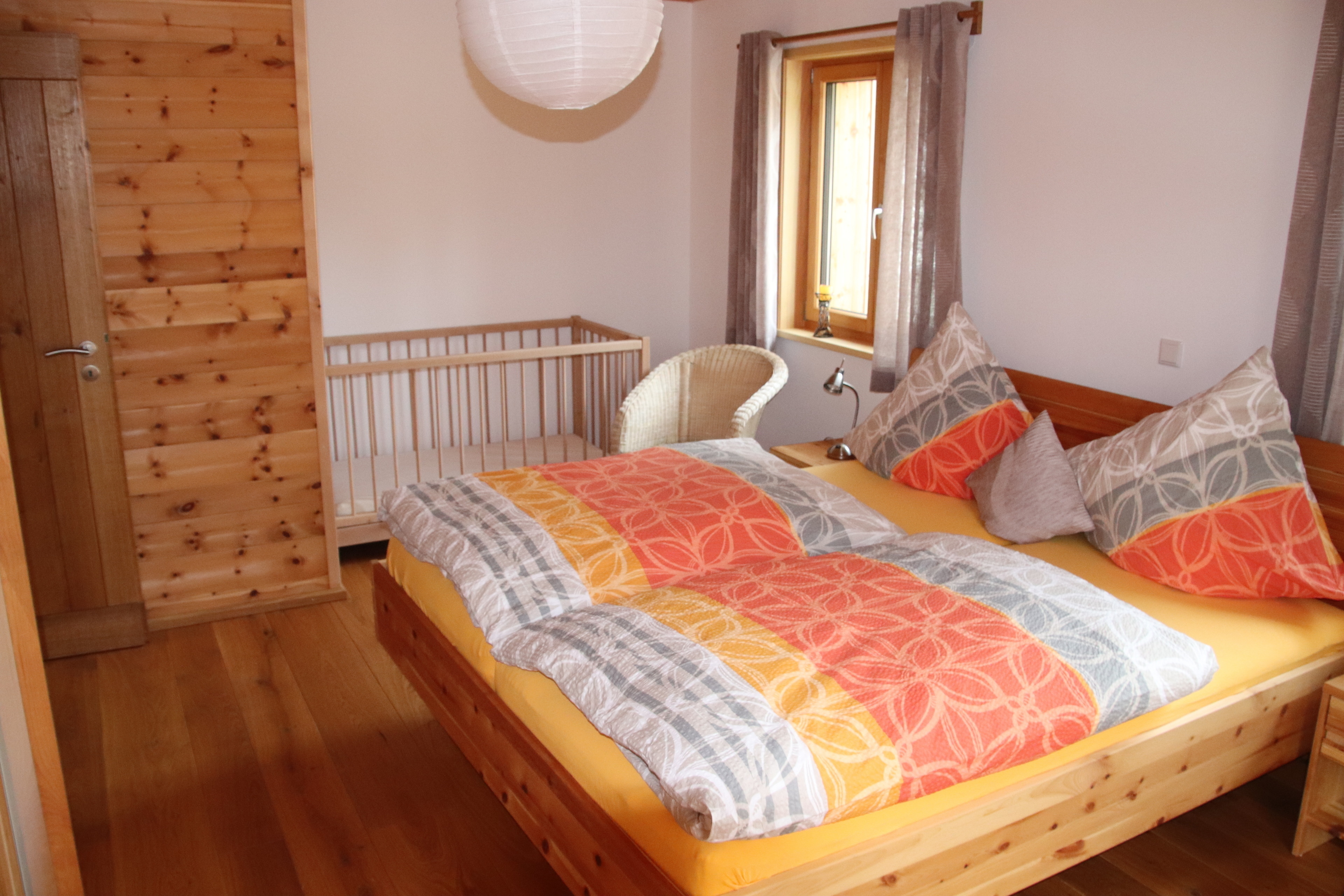 - Schlafzimmer I besteht aus einem Doppelbett (1,80 x 2,00 m) sowie einem Kinderbett (0,70 x 1,40 m)