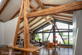 Das im April 2019 fertiggestellte luxuriöse Penthouse im aufwendig sanierten, denkmalgeschützten Bauernhaus in Riederau am Ammersee (BJ 1770) mit ca. 100 qm Wohnfläche ist das Juwel für den Gast mit Sinn für das Besondere und als Gründerhof und ehemaliges Museum gut bekannt als Stohrerhof. Gerade wurde das Ferienhaus im Katalog Das Beste der Region aufgenommen. In diesem loftartigen Penthouse mit zwei Doppelbetten, 1 Kamin, 1 Küche, 2 Bädern, Dusche mit Regenbrause, separatem WC, verzichten Sie auf nichts. Bootssteg, Strandbad und natürlich der Ammersee liegen fußläufig 10 Min. vom Hof entfernt. 3 Restaurants befinden sich in unmittelbarer Nähe im Ort. Wander- und Radwege starten direkt vor der Haustür.