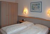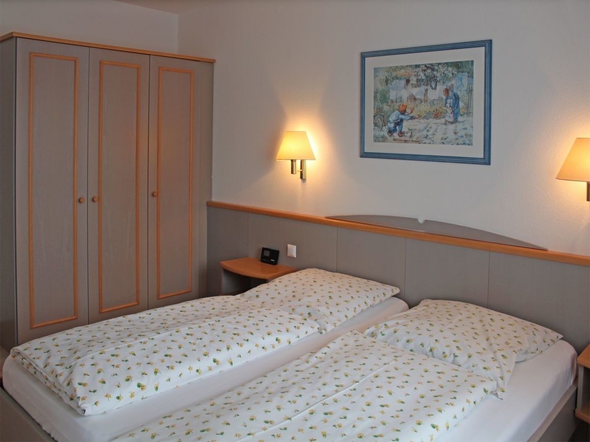 mit Doppelbett und geräumigem Kleiderschrank. Auch von diesem Zimmer aus haben Sie Zutritt zur Terrasse.