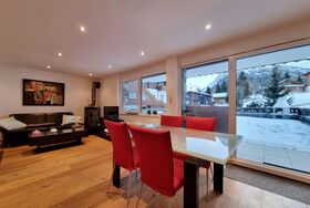 Moderne Wohnung mit 3 Schlafzimmern, 3 Bädern im Erdgeschoss des Hauses Mountain Village Residence. Alle Schlafzimmer haben ein Doppelbett und ein eigenes Bad. 2 Bäder haben eine Dusche, eines hat eine Badewanne. Ausserdem gibt es eine zusätzliche Toilette. Im geräumigen Wohnzimmer gibt es eine Sitz- und Essecke rund um den Kamin. Weiter befindet sich neben dem Wohnbereich die offene und moderne Küche mit allen notwendigen Geräten. Die Wohnung verfügt über eine grosse Terrasse mit einem BBQ-Grill. Im Haus gibt es auch einen gemeinschaftlichen Wellnessbereich mit Jacuzzi, Sauna und einem Fitnessraum (Wichtig: Das Jacuzzi ist nur in der Hochsaison von Mitte Dezember bis Mitte März in Betrieb!)