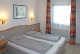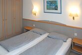 mit Doppelbett und geräumigem Kleiderschrank. Auch von diesem Zimmer aus haben Sie Zutritt zur Terrasse.