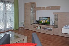 Dieses sehr gemütlich eingerichtete Haus mit ca. 64 qm Wfl., hat ein großes Wohn-Esszimmer mit neuer Essgruppe, einer Polstersitzgruppe mit Schlafcouch, neuem Wohnzimmerschrank, Internetzugang, neuem Flachbildfernseher und Radio.