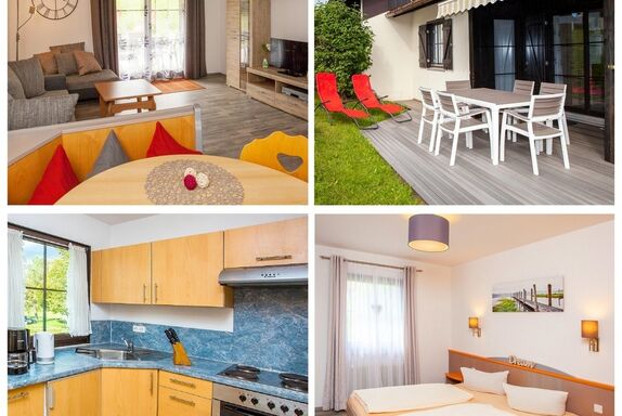 Vom Wohnzimmer aus gelangen Sie direkt auf Ihre Terrasse. Auf der Terrasse ist das Grillen (mit eigenem Grill) erlaubt. Der direkt angrenzende Essbereich bietet Platz für Ihre gemeinsamen Mahlzeiten und gemütliche Abende.