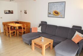 Genießen Sie den Urlaub in dem freundlich eingerichteten Reiheneckhaus (Doppelhaushälfte) in kurzer Entfernung zu Parkplatz, Spielplatz und Restaurant. Von Ihrer Süd-Terrasse haben Sie einen schönen Blick auf eine Wiese.