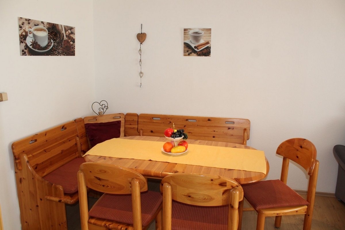 • Teil des Wohnzimmers ist auch eine Essecke mit einer Eckbank und Stühlen für insgesamt 6 Personen.