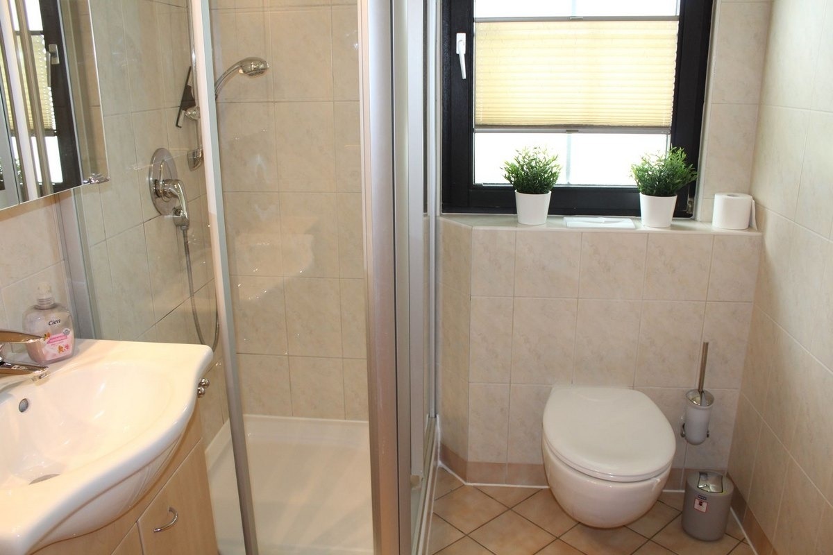 • Bad wurde renoviert und verfügt über eine Dusche, ein WC und ein großes Fenster.