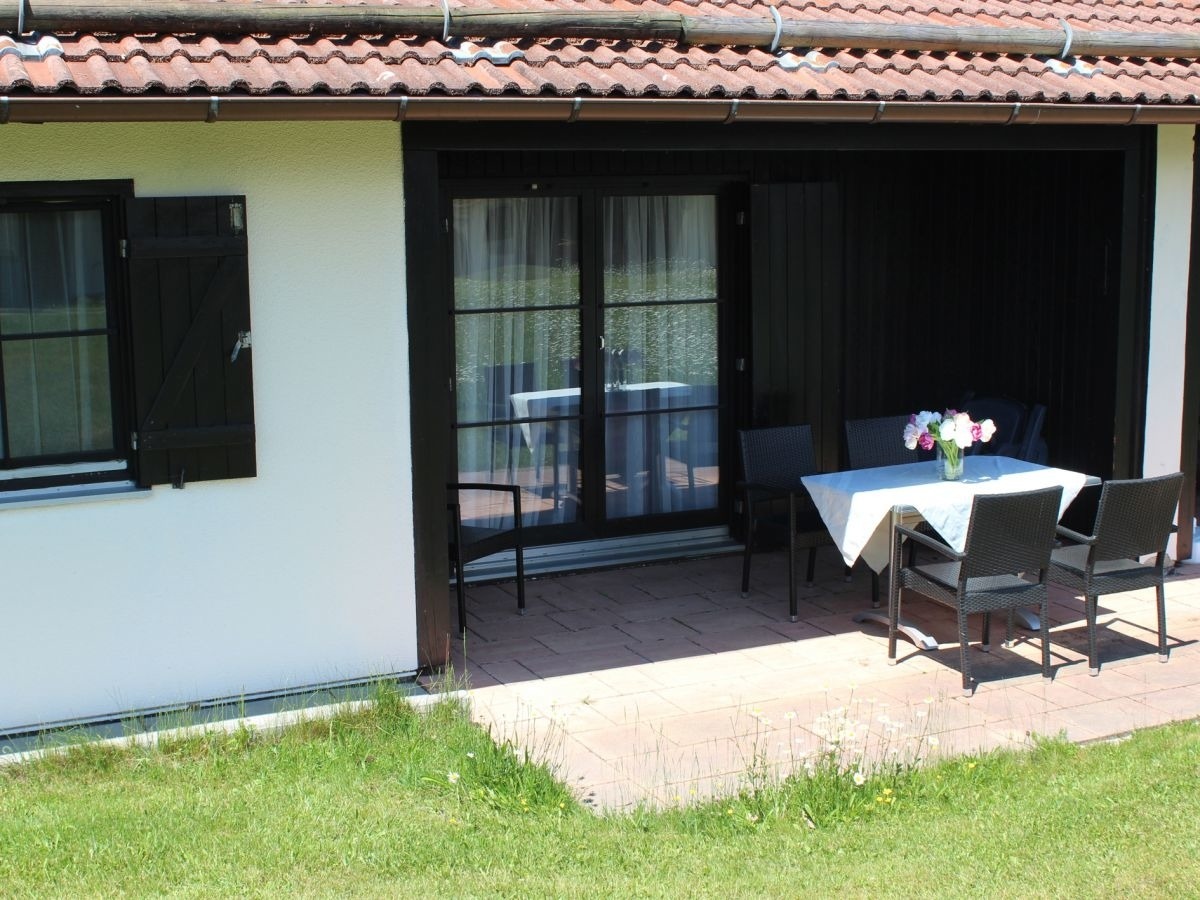 Unser kleines Ferienhaus mit ca. 64 m² ist eines der wenigen in einer 2er Einheit (Doppel-Haus), daher sehr ruhig gelegen. Auch von Vorteil sind kurze Wege zum Parkplatz, zur Rezeption und zum Restaurant Hochbergle-Stuben, sowie kurze Wege fürs Gepäck, da bis vor die Haustüre gefahren werden kann. Die Terrasse, an der sich eine große Spiel- und Liegewiese anschließt ist voll möbliert mit Tisch, 4 Stühlen und 2 Liegen.