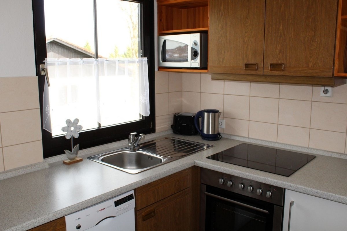 • die Küche ist komplett eingerichtet und neu ausgestattet mit Kühlschrank (mit Gefrierfach), Herd (Ceranfeld), Backofen und Spülmaschine. Ebenfalls vorhanden sind Wasserkocher, Toaster, Mikrowelle und Kaffeemaschine.