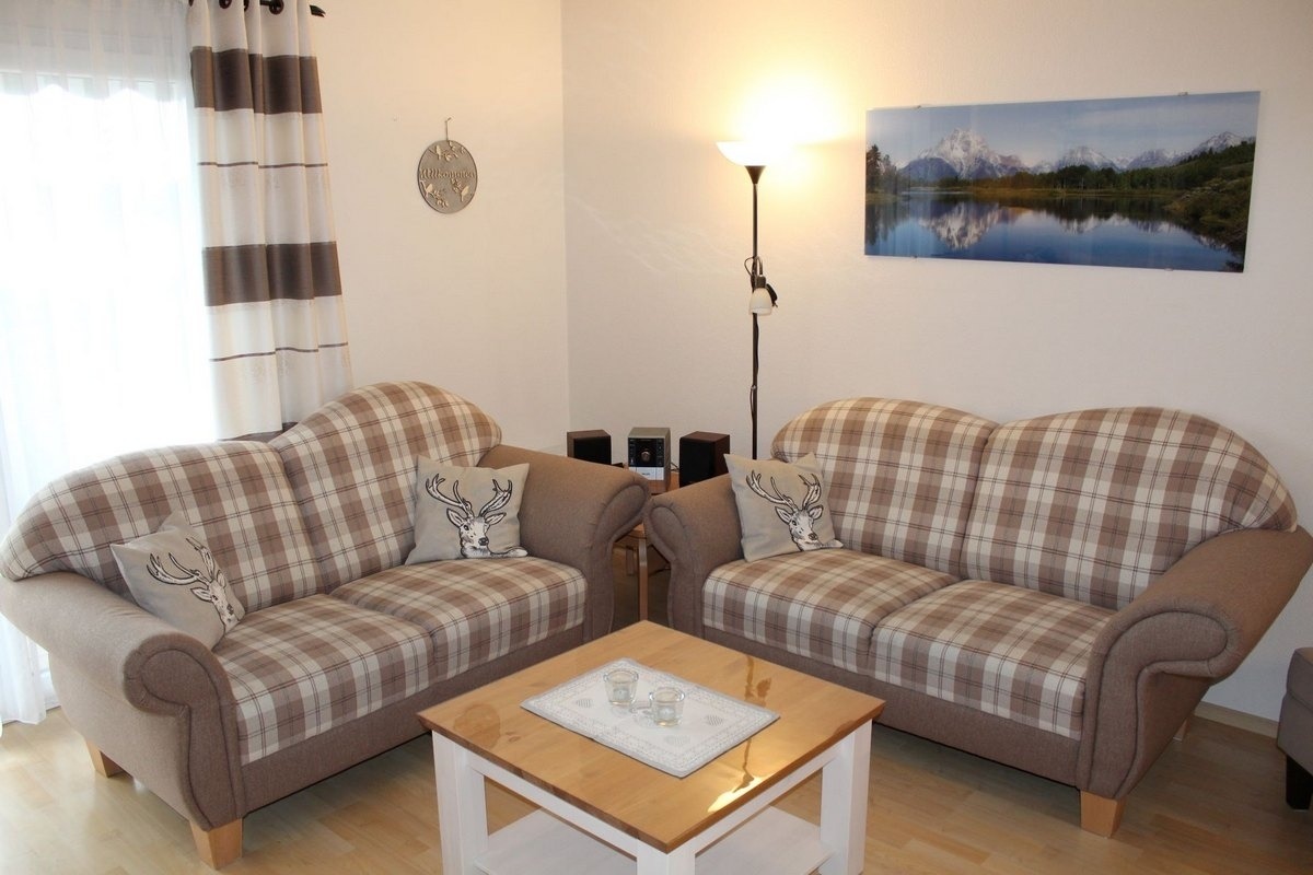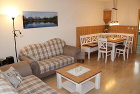 Wohn-/Esszimmer mit Flachbild-TV, Stereoanlage, Spiele für die ganze Familie und eine Reihe Bücher für gemütliche Stunden haben wir für Sie bereitgestellt.
