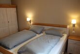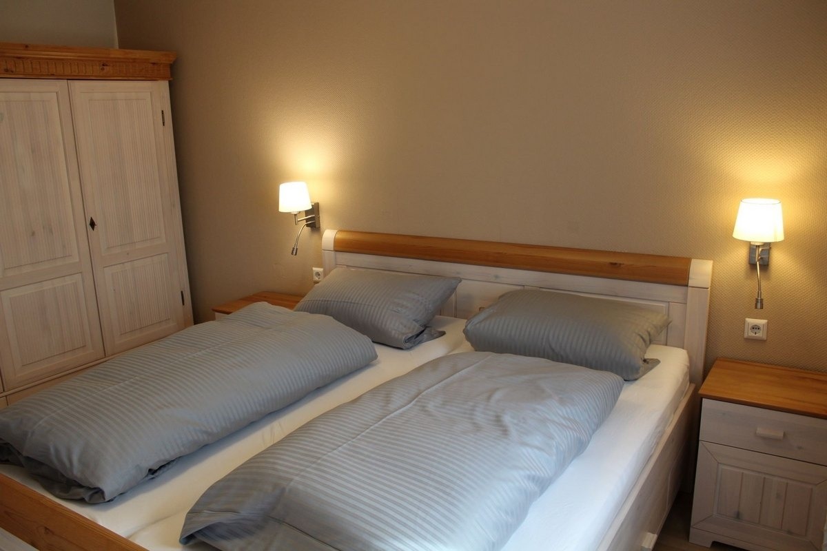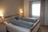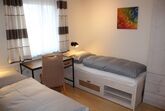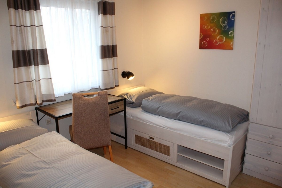 Schlafzimmer II mit 2 getrennten Betten und Flachbild-TV an der Wand.