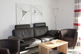 Die große gemütliche Sitzgruppe bietet Platz für alle Gäste. Ein Flachbild-Fernseher und Radio (Musikanlage) gehören zur Ausstattung dieses Hauses. Vom Wohnzimmer aus gelangen Sie direkt auf Ihre Terrasse. Auf der Terrasse ist das Grillen (mit eigenem Grill) erlaubt.