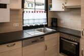 Komplett eingerichtete Küche mit Spülmaschine, Kühlschrank mit Gefrierfach, E-Herd, Dunstabzug, Backofen, Wasserkocher, Toaster, Kaffeemaschine, Besteck, Geschirr, Gläser, Töpfe und alle gebräuchlichen Küchenutensilien. Perfekt zum gemeinsamen Kochen