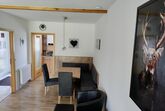 • Wohnzimmer mit Sofa und zwei Sesseln, ein gemütlicher Essplatz mit Eckbank