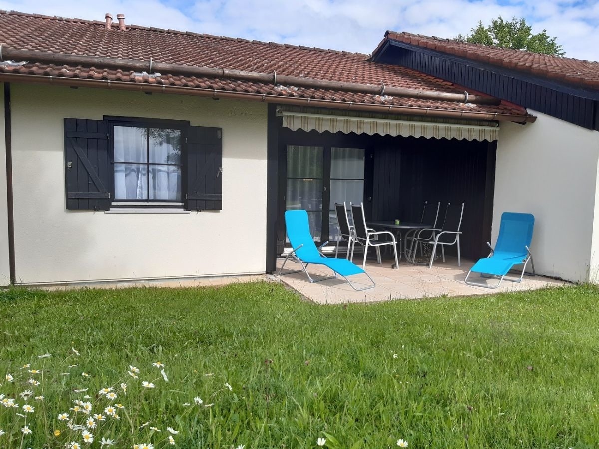 Unser kleines Ferienhaus mit ca. 64 m² zeichnet sich durch die besonders schöne Lage, mit großer Spiel- und Liegewiese aus. Die über das Wohnzimmer erreichbare, teilweise überdachte Terrasse mit Markise ist nach Süd-Osten ausgerichtet und ist möbliert mit einem Tisch, 4 Stühlen und 2 Liegen.