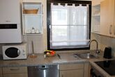 Voll ausgestattete Küche: Kühlschrank mit Gefrierfach, Geschirrspüler, Herd (Cerankochfeld), Backofen, Wasserkocher, Toaster, Kaffeemaschine, Besteck, Geschirr, Gläser, Töpfe und alle gebräuchlichen Küchenutensilien.