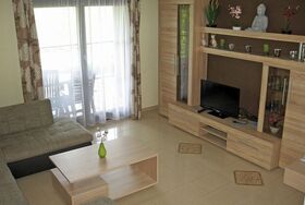 Das modern eingerichtete Reiheneckhaus in erhöhter Randlage des Feriendorfes bietet Ihnen die Vorteile der KönigsCard. Genießen Sie sonnige Stunden auf der gefliesten Süd-West-Terrasse mit Wiesen- und Bergblick, eine Markise spendet Ihnen Schatten.