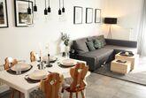 Das Esszimmer grenzt direkt an das wohnliche Wohnzimmer an. Der moderne Esstisch mit den urigen Bauernstühlen lädt zu ausgiebigen gemeinsamen Mahlzeiten und gemütlichen Abenden ein.