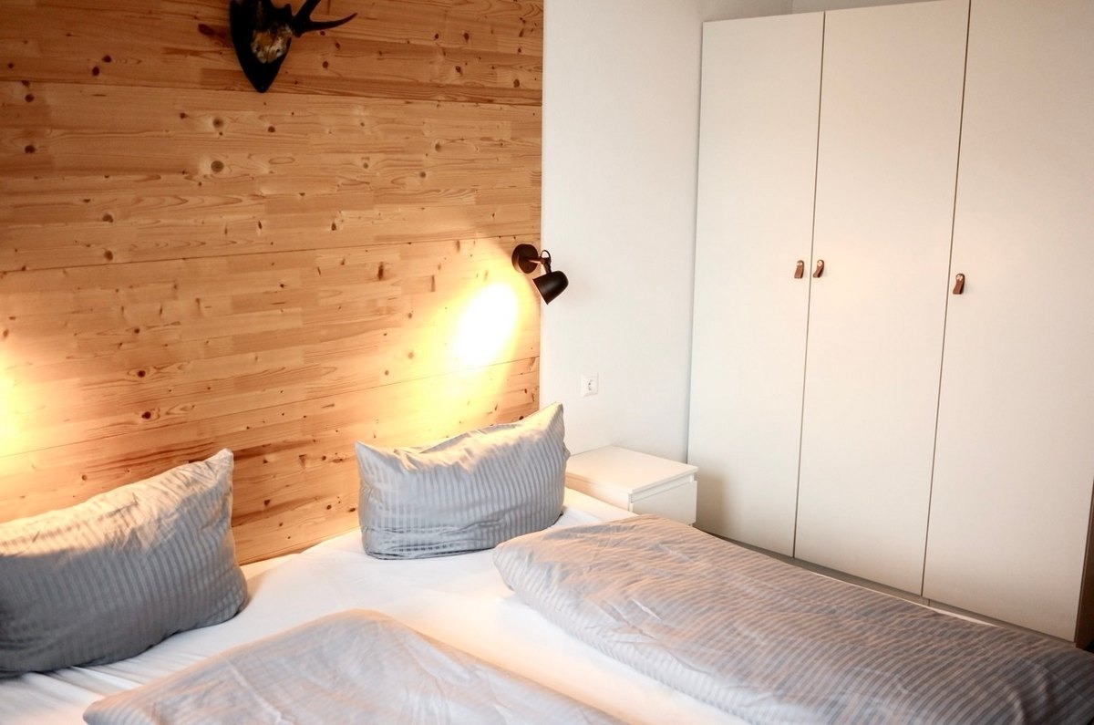 Ein erholsamer Schlaf ist hier gewiss. Das Schlafzimmer ist mit einem bequemen Doppelbett (180 x 200cm) ausgestattet. Außerdem verfügt es über einen großzügigen Kleiderschrank und einen LED-Fernseher.