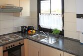 Voll ausgestattete Küche: Kühlschrank mit integriertem Gefrierfach, Herd mit Dunstabzug, Backofen, Geschirrspüler, Mikrowelle, Wasserkocher, Toaster, Kaffeemaschine, Besteck, Geschirr, Gläser, Töpfe und alle gebräuchlichen Küchenutensilien.