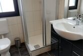 mit Toilette, Dusche, Waschbecken inkl. Unterschrank, Spiegel, sowie Kosmetikspiegel.
