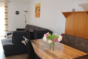 In der gemütlichen Wohnlandschaft können Sie sich nach einer langen Wanderung so richtig wohlfühlen und entspannen. Flachbild-TV und Radio/CD-Player gehören ebenfalls zur Ausstattung dieses Hauses. Bei Belegung mit 5 Personen dient das ausziehbare Sofa als Schlafgelegenheit für die 5. Person. Vom Wohnzimmer aus gelangen Sie direkt auf Ihre Terrasse. Grillen mit Ihrem eigenen Grill ist gestattet. Der direkt angrenzende Essbereich bietet Platz für Ihre gemeinsamen Mahlzeiten und gemütliche Abende.