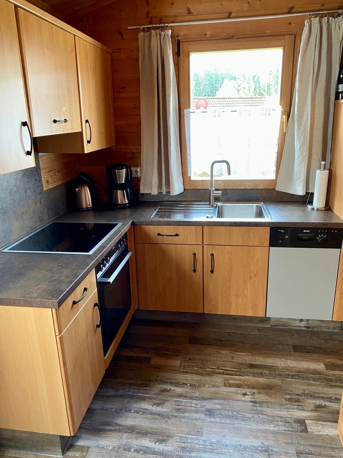 Die voll ausgestattete Küchenzeile verfügt über E-Herd, Backrohr, 4-Platten-Kochfeld, Mikrowelle, Toaster, Kaffeemaschine, Wasserkocher, Geschirrspüler, Kühlschrank usw.
